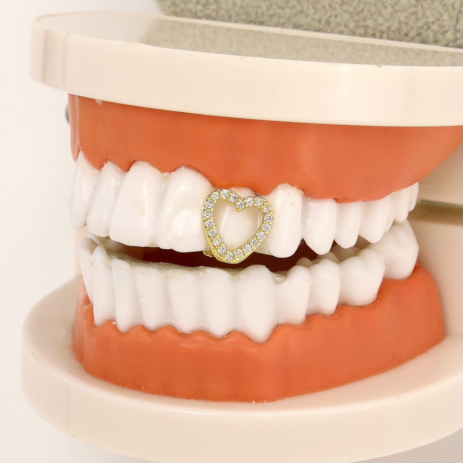アマゾンTEMU ヒップホップファッション ゴールド歯 ラブハート キュービックジルコニア歯飾り デイリーユース 個性派 トレンド ラップアクセサリー