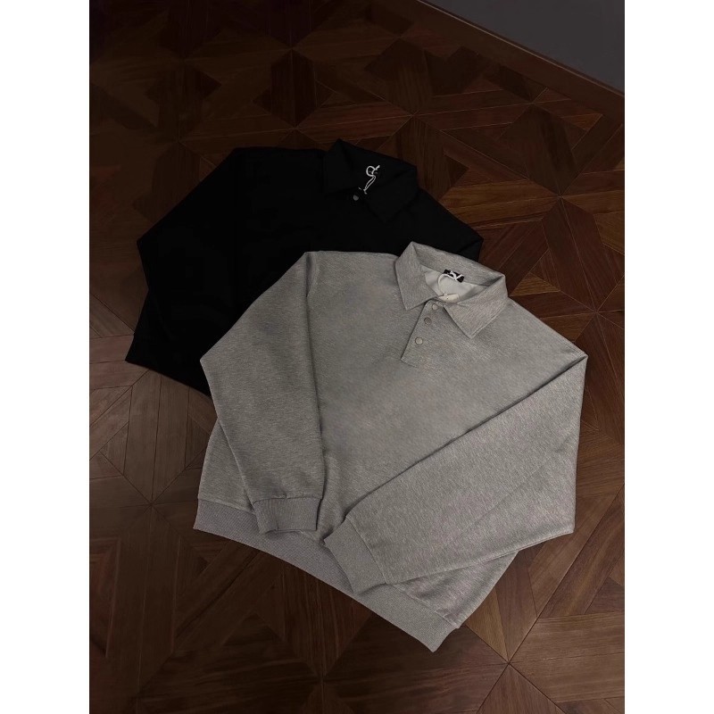 灰色重磅太空棉长袖Polo衫卫衣男春秋款潮牌高级感美式正肩打底衫