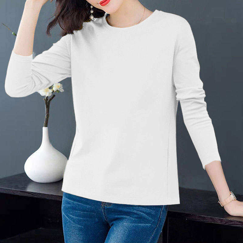 女性用長袖Tシャツ2025秋新作トップスレディースインナーレイヤリングシャツ無地秋服