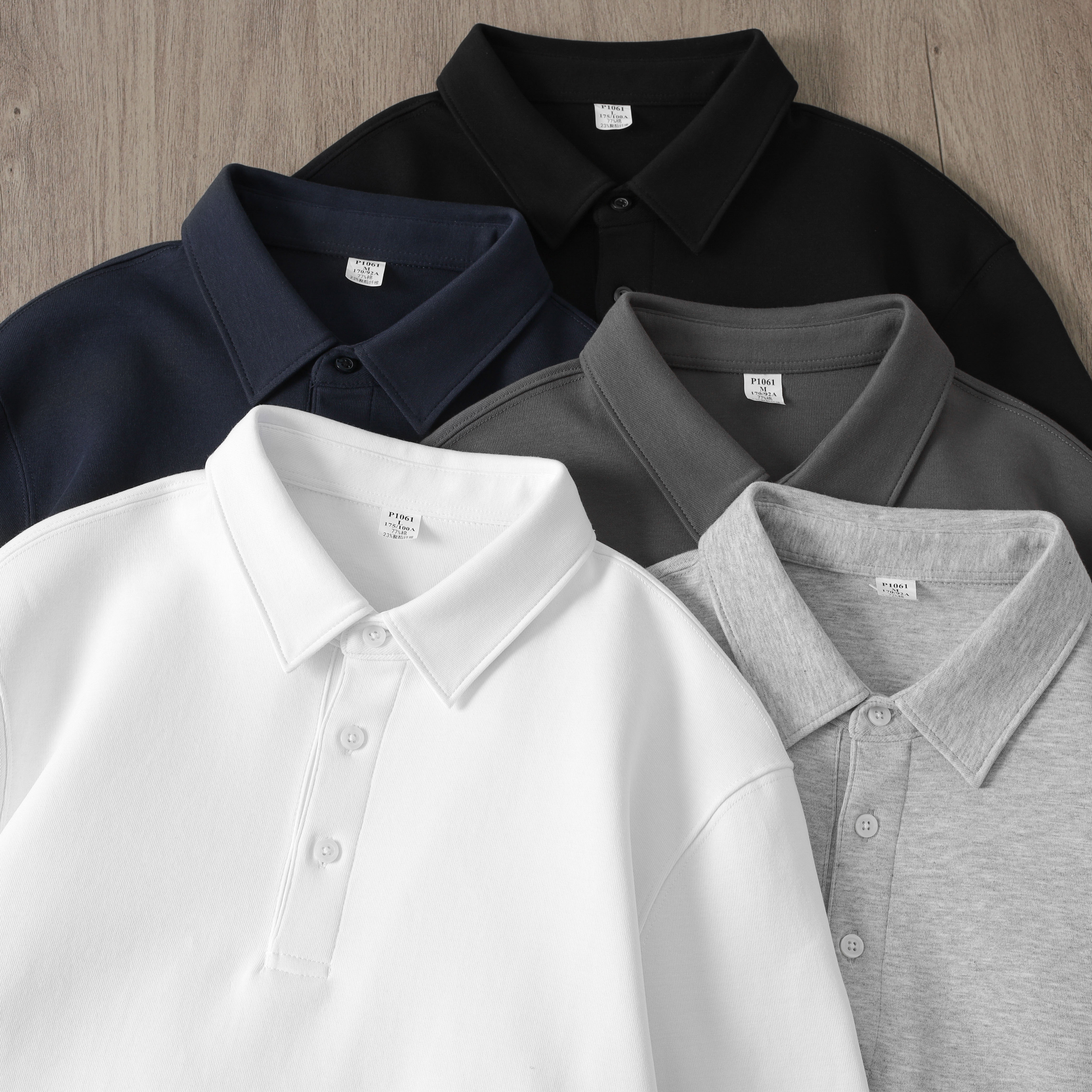 Benjie厳選の秋の新作メンズ長袖ポロシャツ、無地で多用途なコットンベースのシャツ、ラペル付きスウェットシャツ