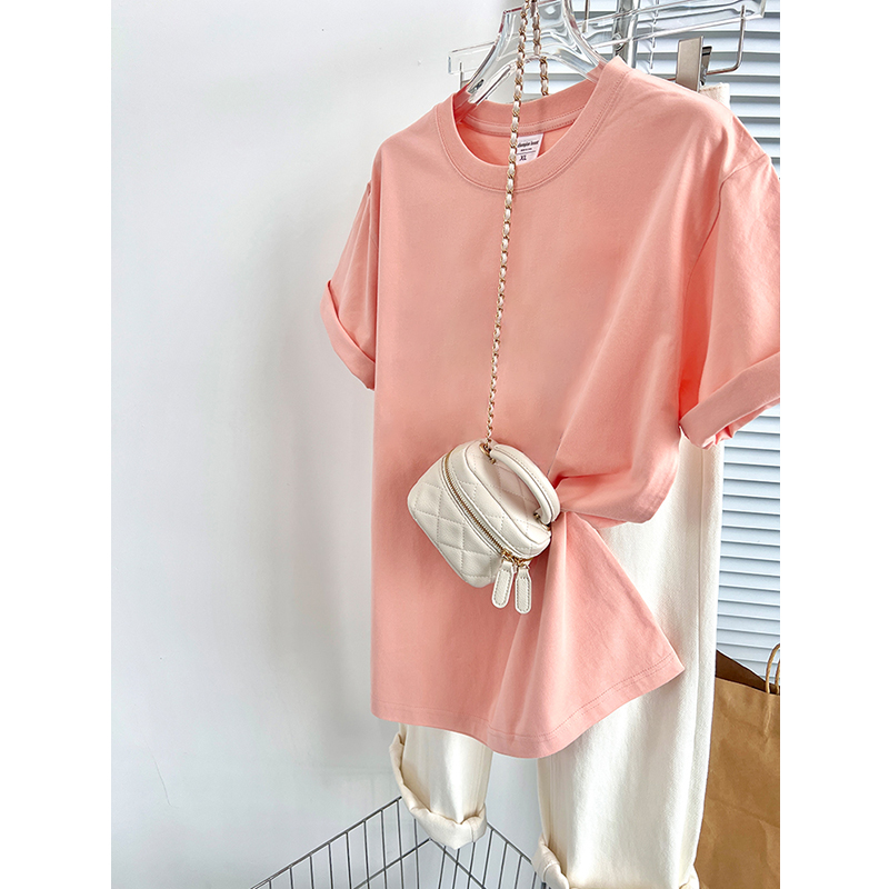 さくらピンクコットンヘビーウェイト半袖Tシャツレディース夏ルーズで多用途なドーパミンデザインニッチトップ