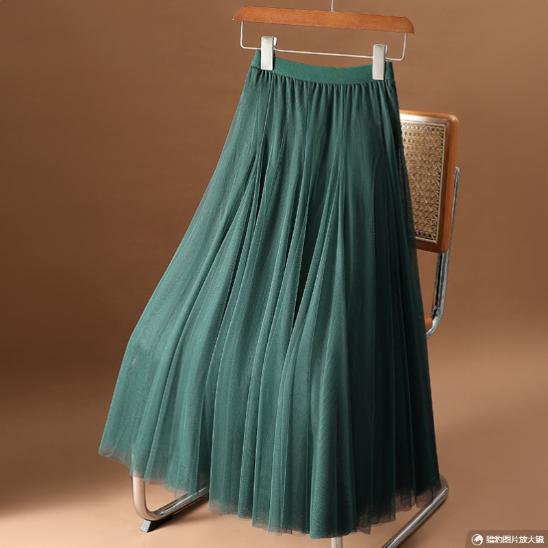 三層の網の紗の大きいスカートの半身のスカートの2025の新型の網の紗のバラの赤色はやせている紗のスカートの広場のダンスのA字の長いスカート