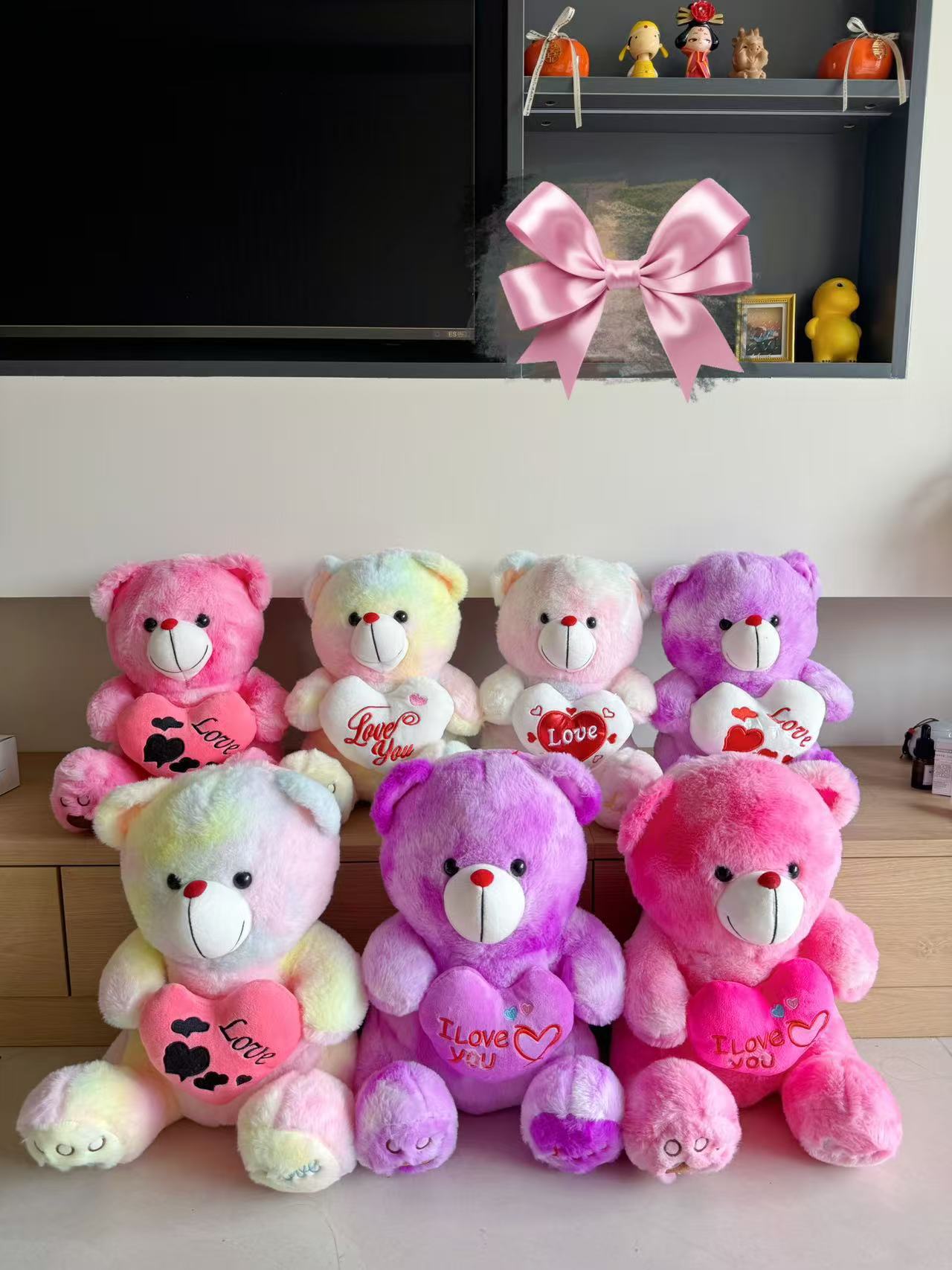 情人节卡通爱心熊毛绒玩具公仔玩偶可爱彩色扎染小熊娃娃儿童活动