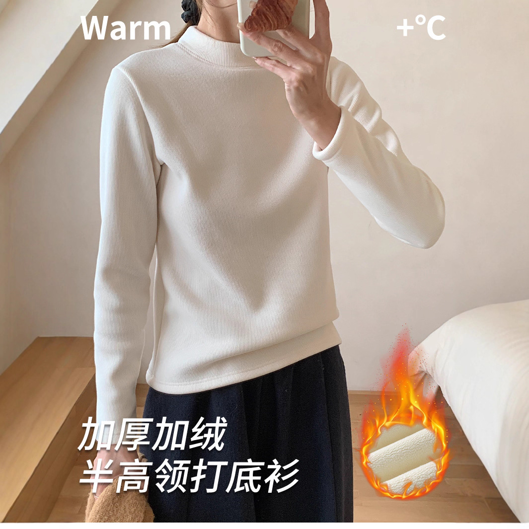 加绒加厚中领打底衫女秋冬新款内搭显瘦磨毛保暖长袖打底T恤上衣