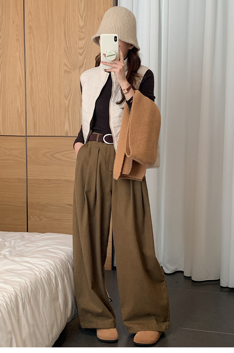 女性用ストレートレッグワイドレッグパンツ、カジュアル、ルーズ、多用途、女性用冬服、黄色のスウェットパンツとベルベット、若々しいハイウエスト、スリム