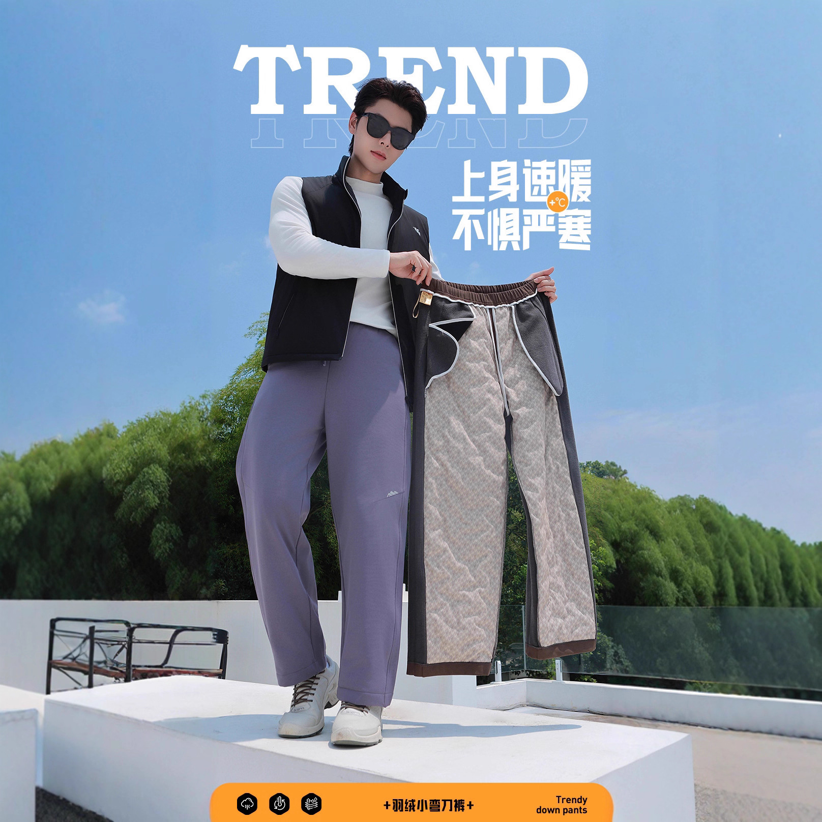 (三防羽绒弯刀裤)男女冬季国标90白鸭绒防风保暖运动户外休闲裤