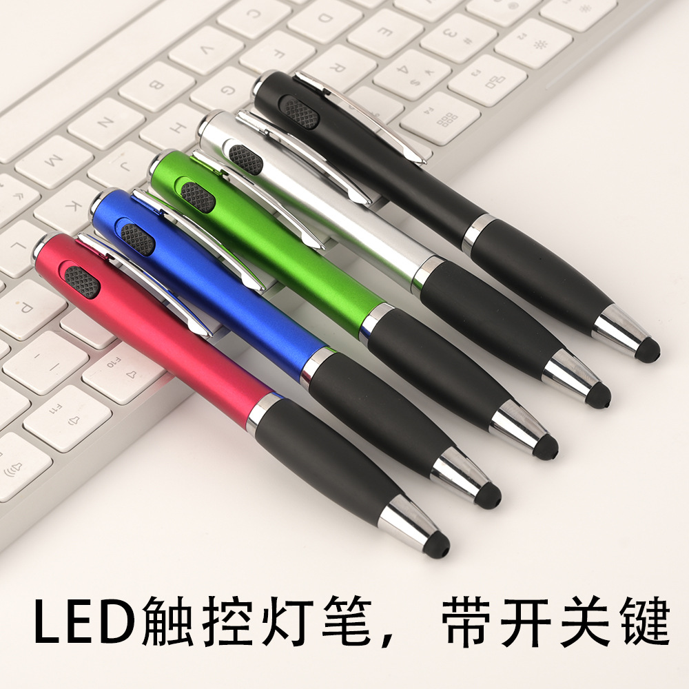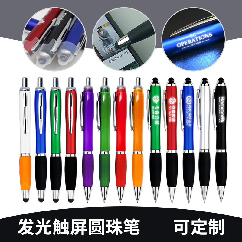 跨境LED灯笔有开关功能触屏发光圆珠笔书写流畅定制LOGO广告笔
