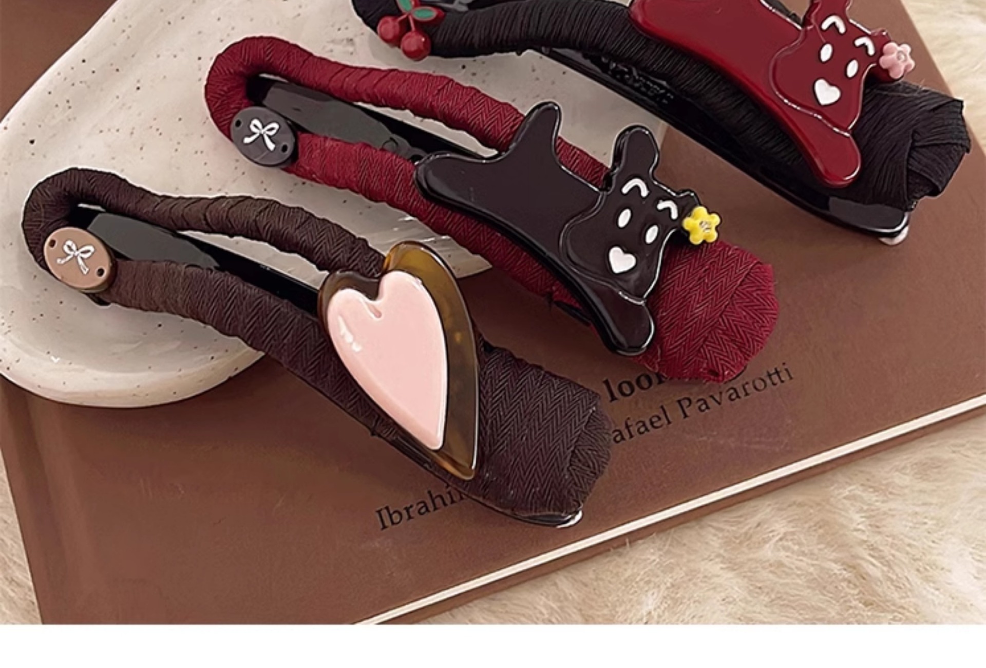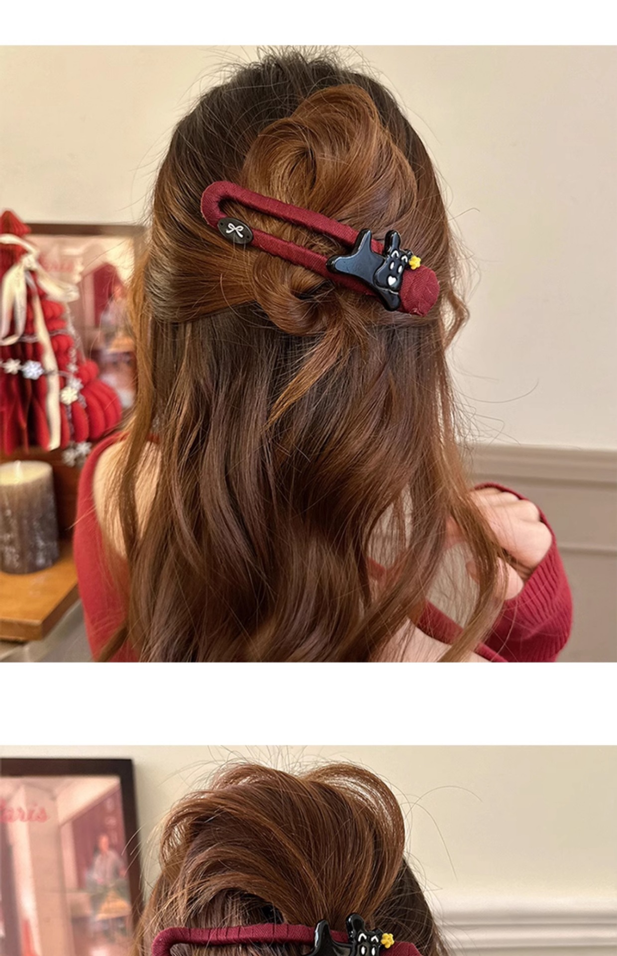 网红甜美布艺蝴蝶结珍珠马尾夹少女心撞色抓夹可爱盘发夹温柔发卡