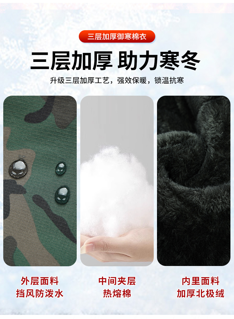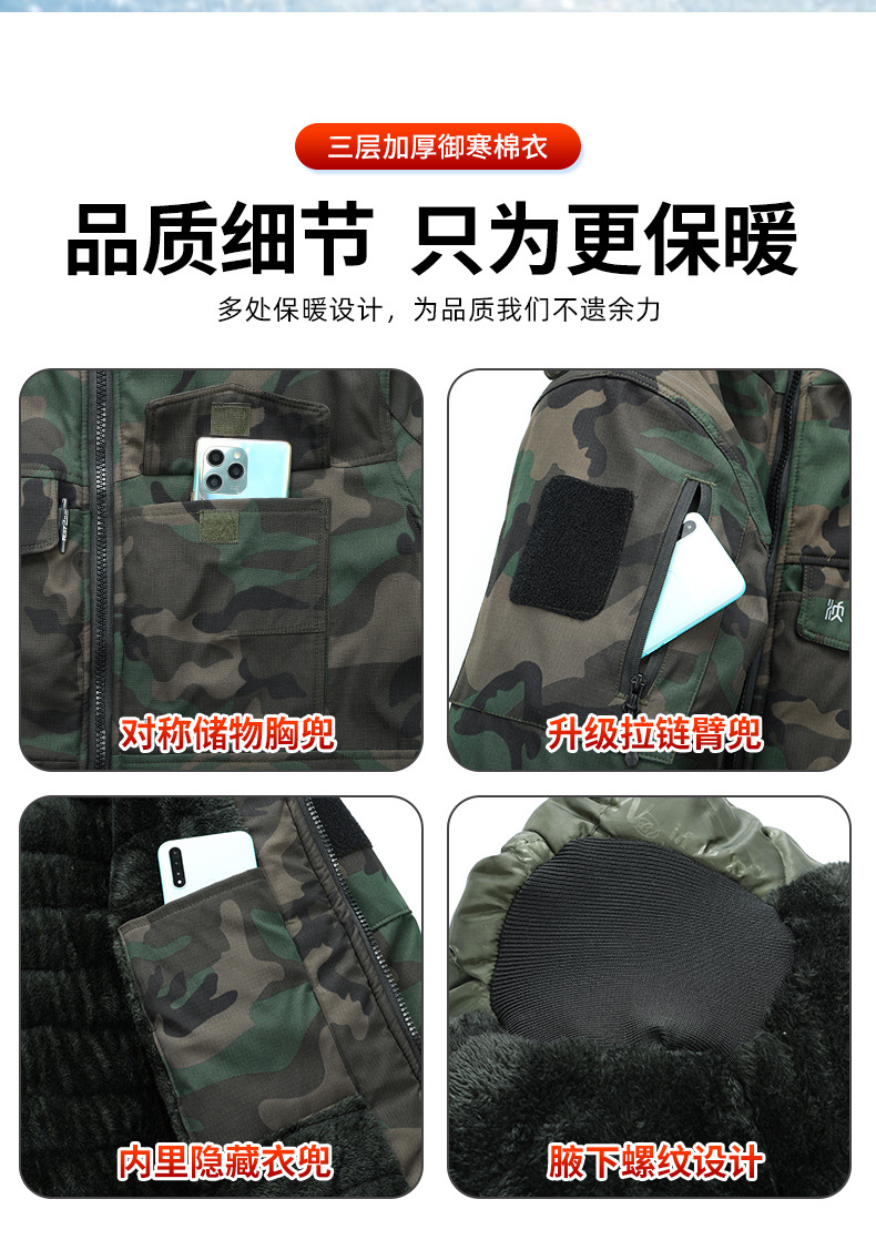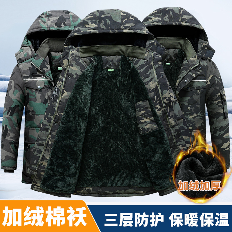 加厚迷彩服加绒棉衣保暖防寒防风防水冷库劳保服棉袄棉服工作服男