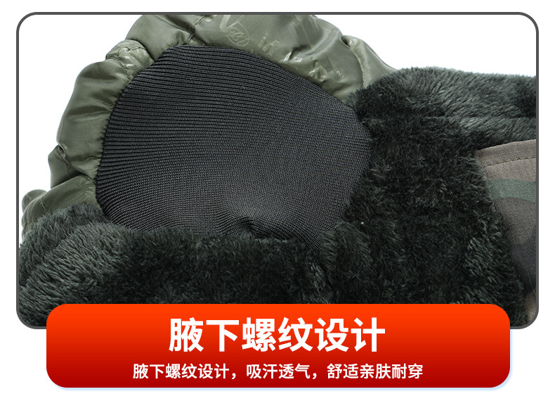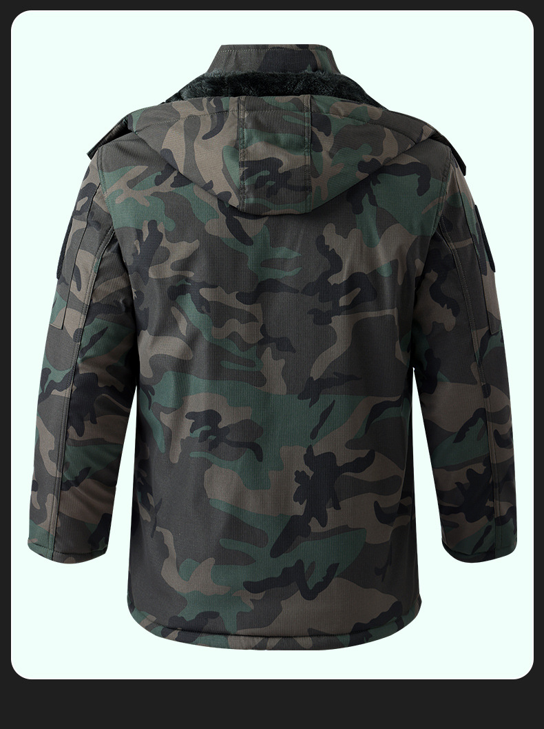 綿服の男性は冬に厚いベルベットの男性労働保東北の大きな綿入れの冷凍庫防寒服の迷彩コートを着ている