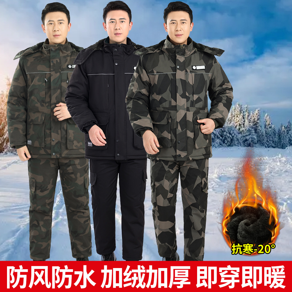 中長迷彩綿入れ男冬厚パイル保温労働保護綿服綿ズボンセット冷凍庫作業防寒服