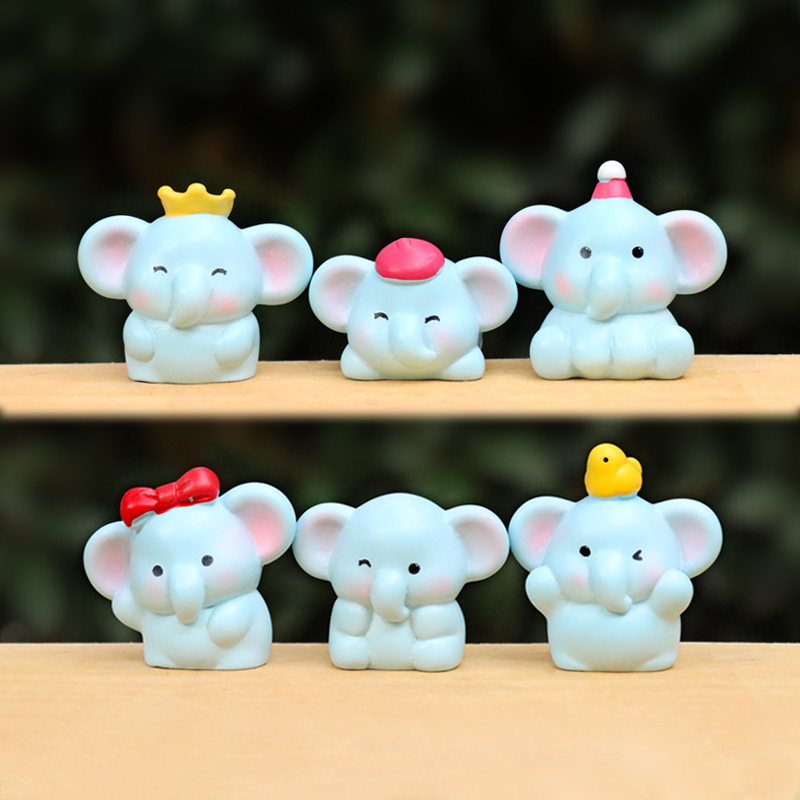 かわいい漫画招財象模型樹脂工芸品コケ微景観装飾品デスクトップ車載小置物