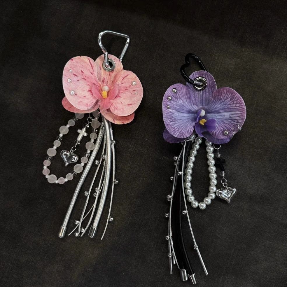 蝴蝶兰流苏挂件手工串珠珍珠链条小众不撞款包挂假日花朵包包饰品