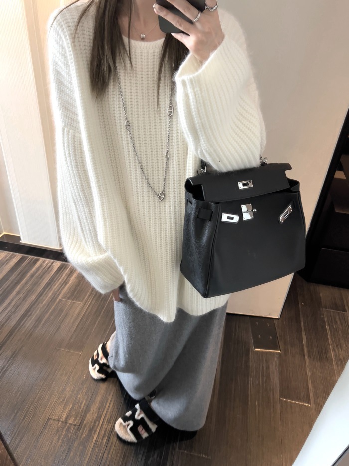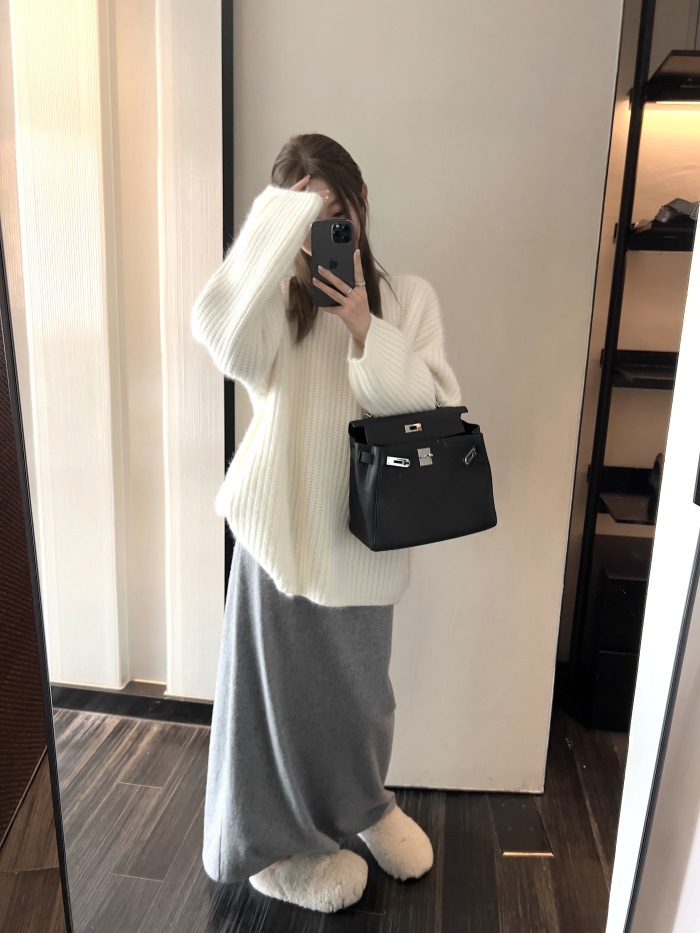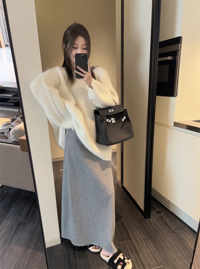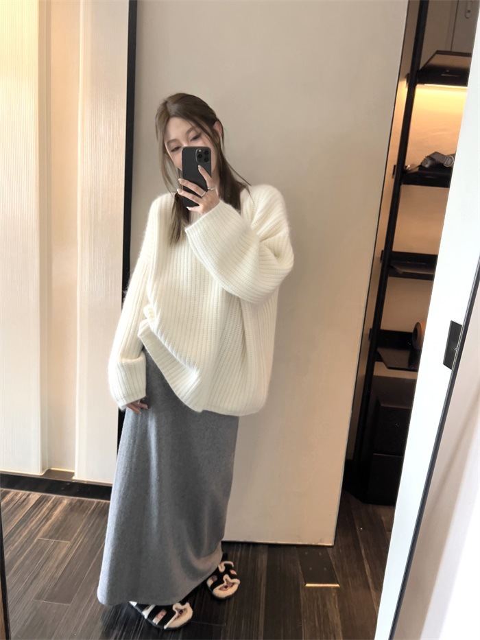 新款慵懒风软糯圆领毛衣中长款纯羊毛女保暖长袖休闲简约打底上衣