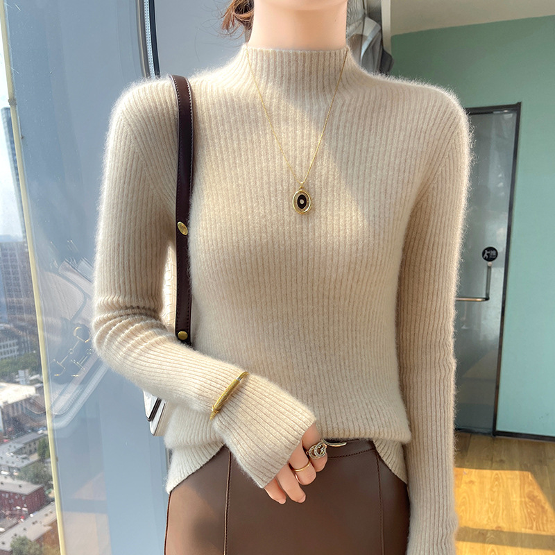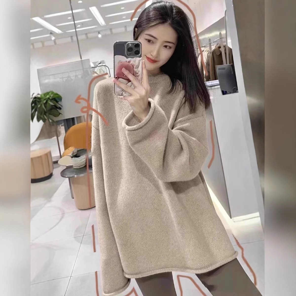 2024年秋冬の新型ミンクのセーターの女性の高襟の中にゆったりとしたカシミヤのニットの底のシャツを合わせて厚いです。
