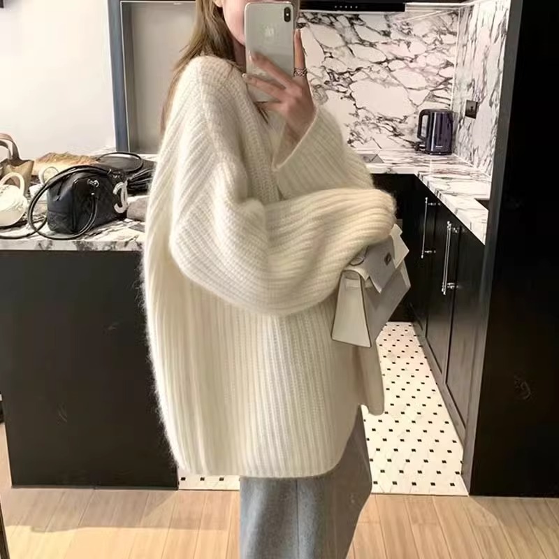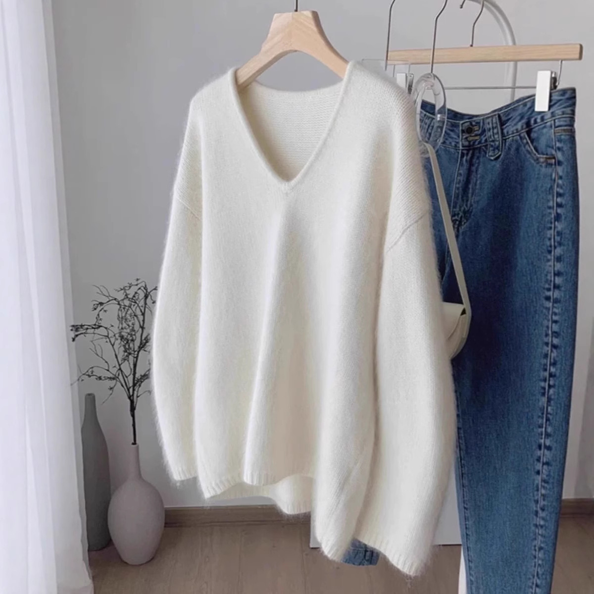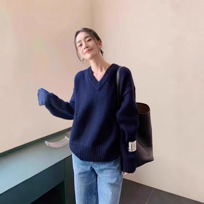 秋冬25新款羊毛衫女宽松慵懒风V领毛衣百搭套头韩系显瘦针织上衣