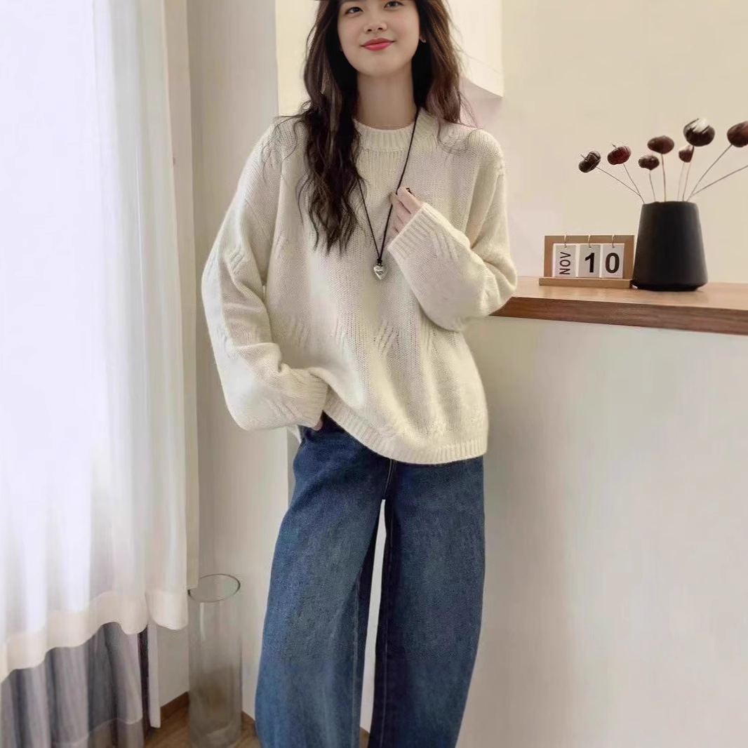 2025秋冬新款简约慵懒纯羊毛衫女羊绒圆领毛衣宽松百搭针织衫上衣