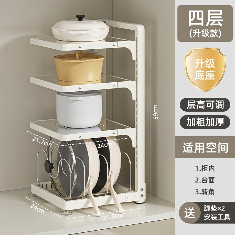 キャビネットのカウンターや壁の角に設置できる鍋棚、シンク下収納、多層棚、調理器具・鍋棚、キッチン収納棚、厚型
