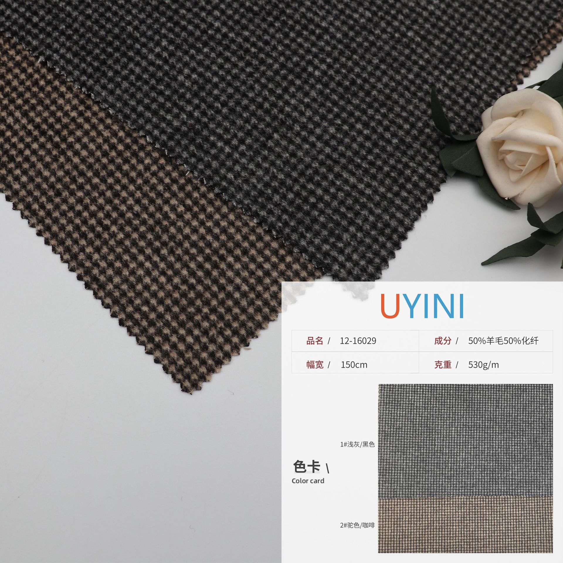 厂家现货50羊毛530克小千鸟格顺毛格 秋冬大衣男女装毛呢面料批发