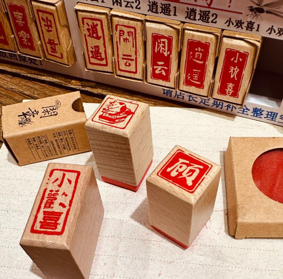创意古风方形实木百家姓印章许愿瓶个性盖章姓名吉语印章古风篆
