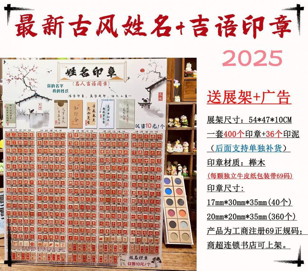 颜色 姓名吉语印章拍400送印泥36+展示架,单补印章20个起拿/包邮,单补印泥50个起拿包邮