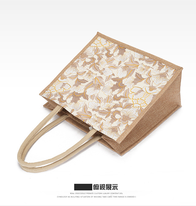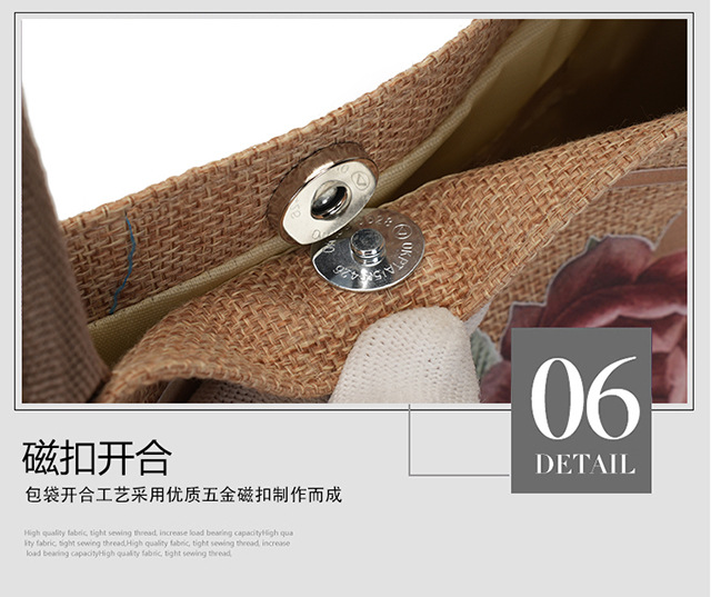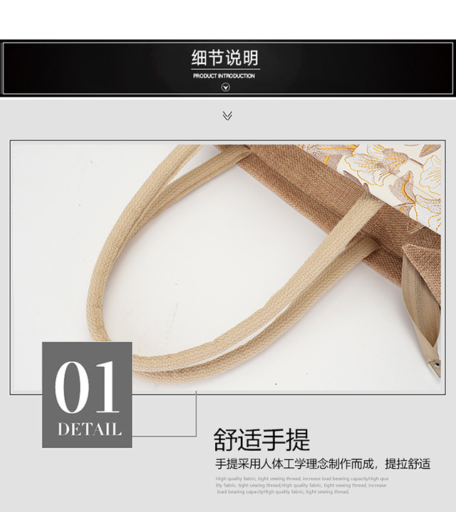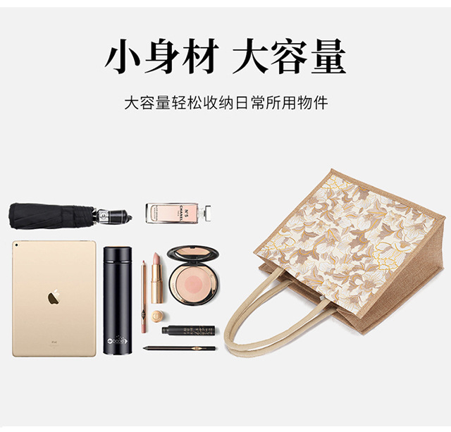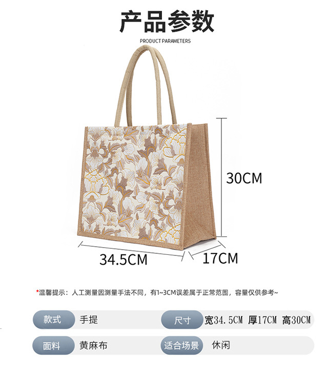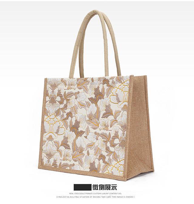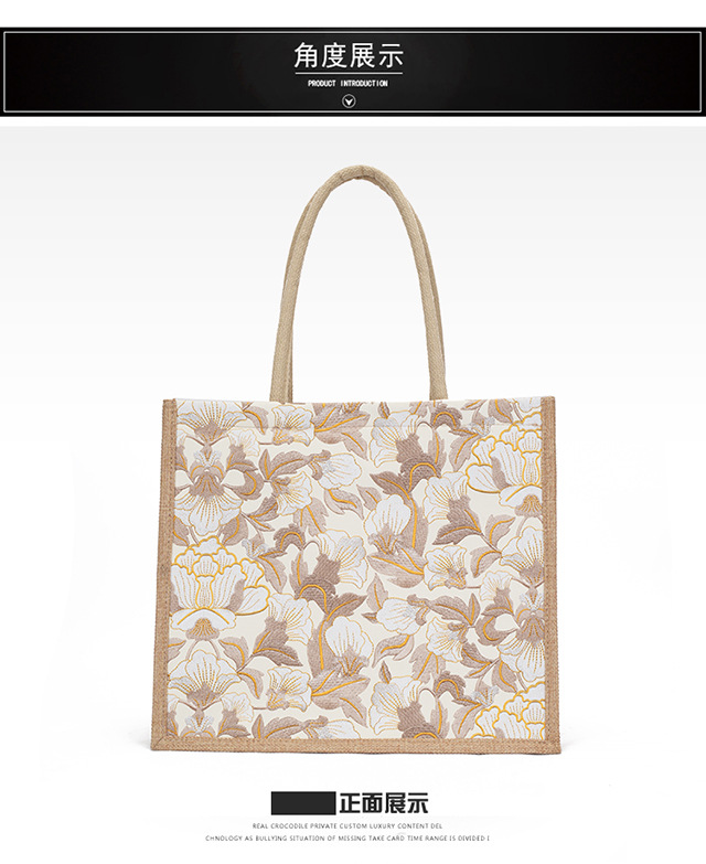 亚麻大容量包包女提花刺绣手提袋简约文艺购物手袋托特包金丝手拎