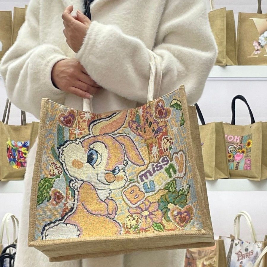 文艺女包大容量棉麻ins风包包时尚女上班通勤手提袋卡通维尼托特