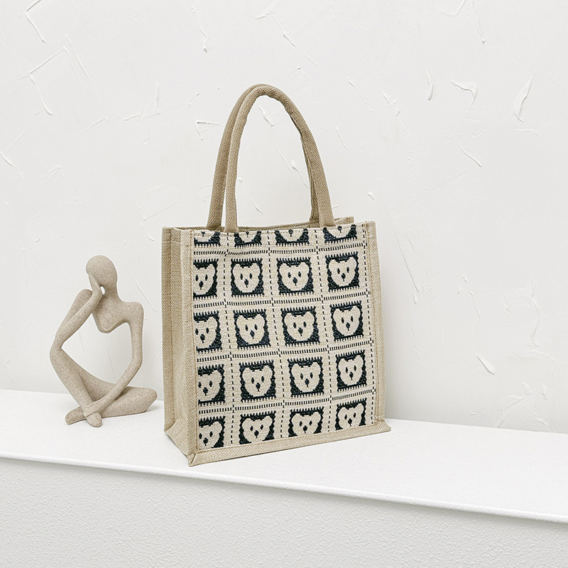 シンプルな都会風コットン麻素材の女の子らしい文字柄レディースハンドバッグ、軽量で芸術的、トレンディなスタイル、手持ちで持ち運びやすい、アーティスティックなスタイル