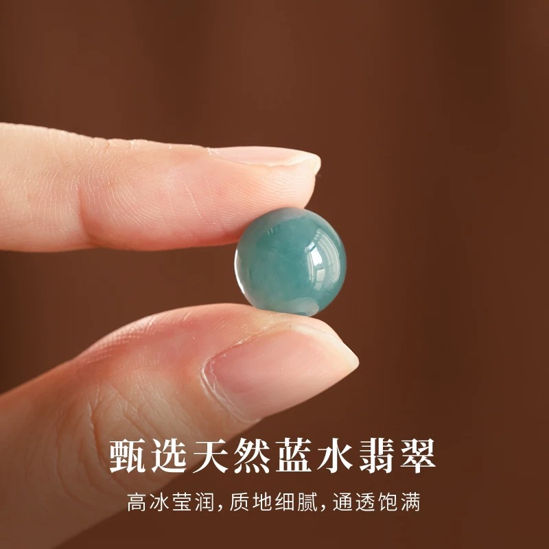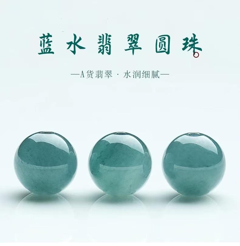 翡翠a货散珠蓝水冰种手链手工串珠diy材料天然玉石项链隔珠单珠