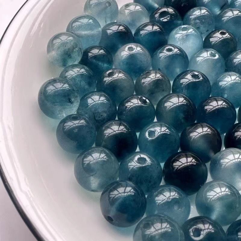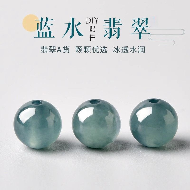 天然ビーズブルーウォーター翡翠ルースビーズハイアイス危険素材シングルビーズ翡翠ネックレスアクセサリーラウンドビーズトップビーズ diy ビーズ