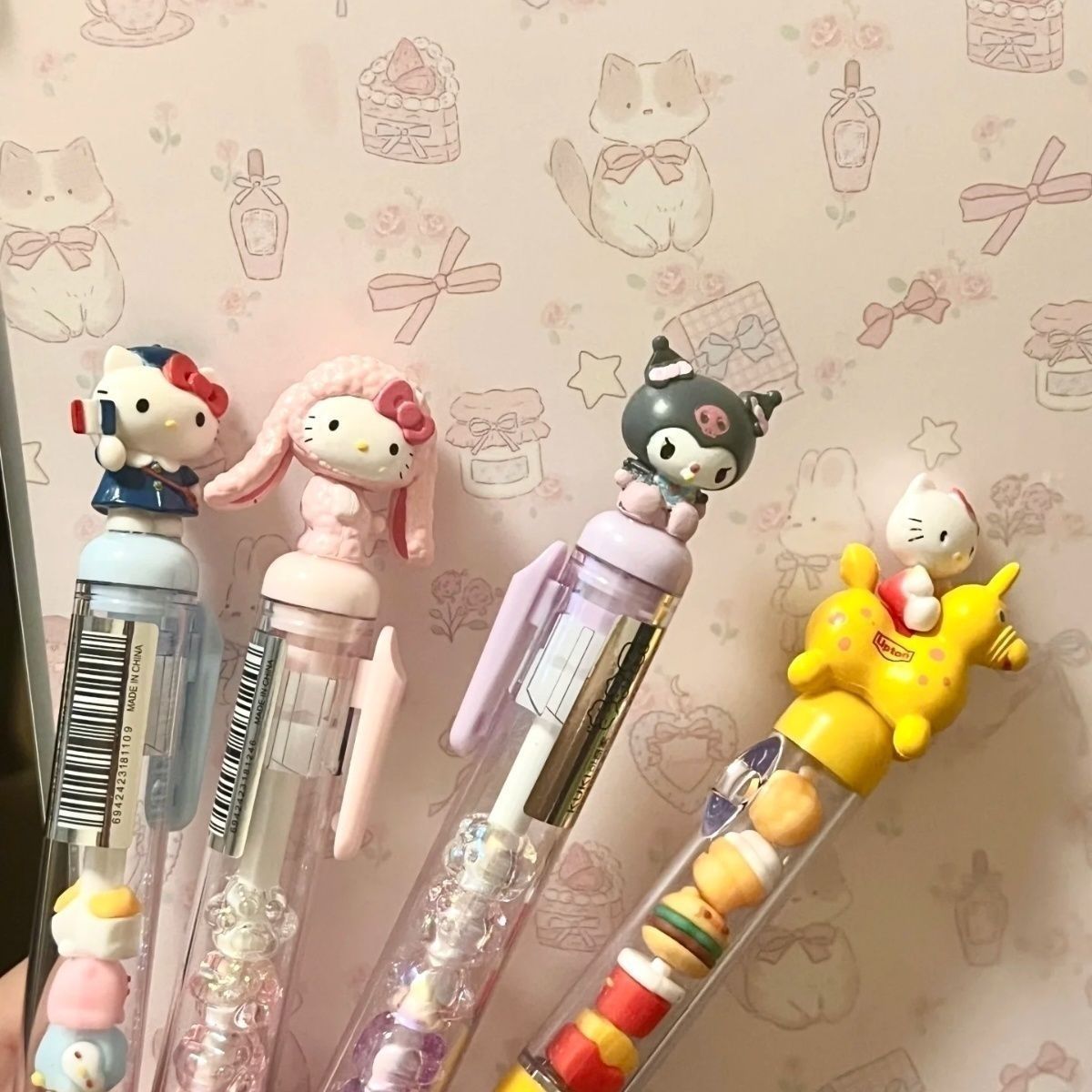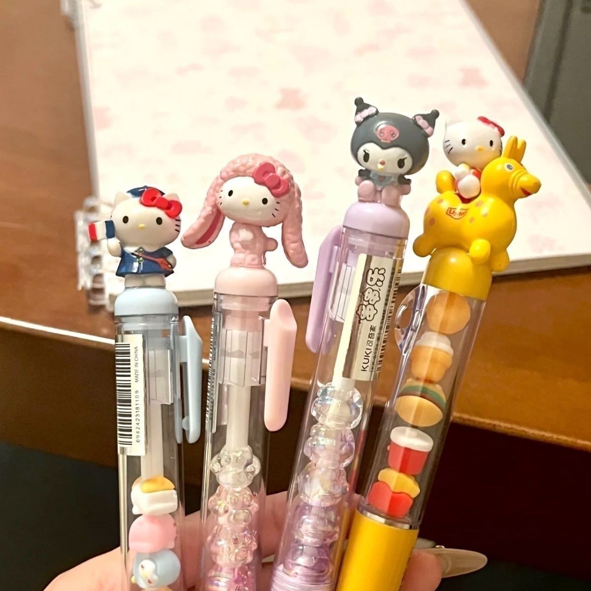 笔芯颜色 粉色美乐蒂一支,蓝色kt猫一支,紫色库洛米一支,红色kt骑马一支,粉色美乐蒂+笔芯1支,蓝色kt猫+笔芯1支,紫色库洛米+笔芯1支,笔芯5支(送一支共6支),笔芯10支(送2支共12支),笔芯20支(送5支共25支)