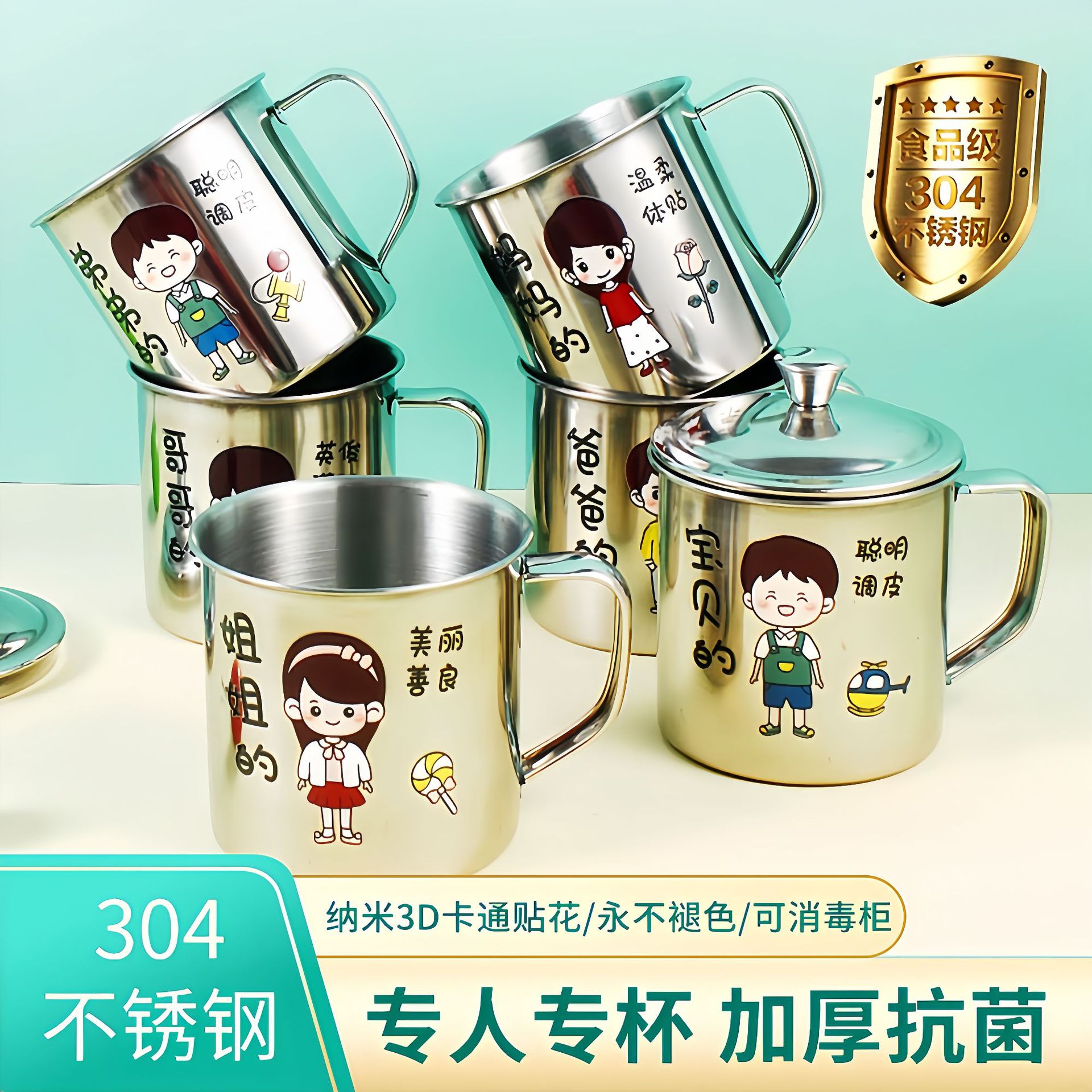 ステンレス304食品級児童アニメコップ家庭用赤ちゃん転倒防止幼稚園コップ親子家族