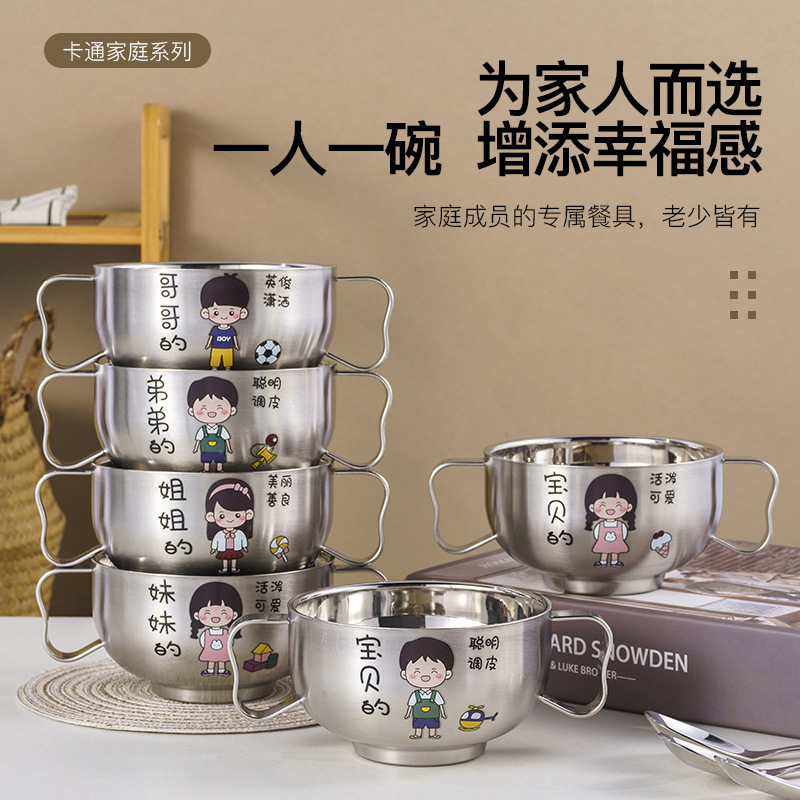 304食品級ステンレス双耳碗子供碗のご飯碗の漫画碗の熱くなることを防ぎます。