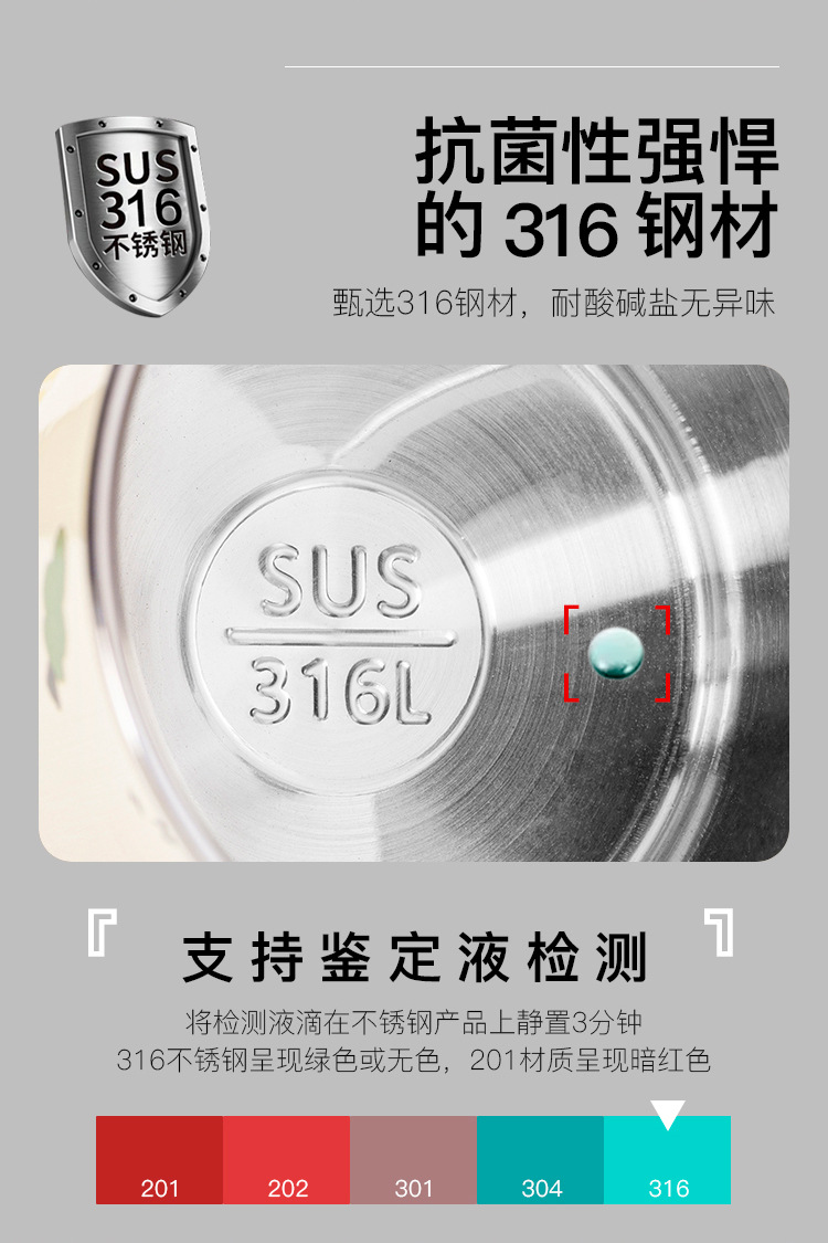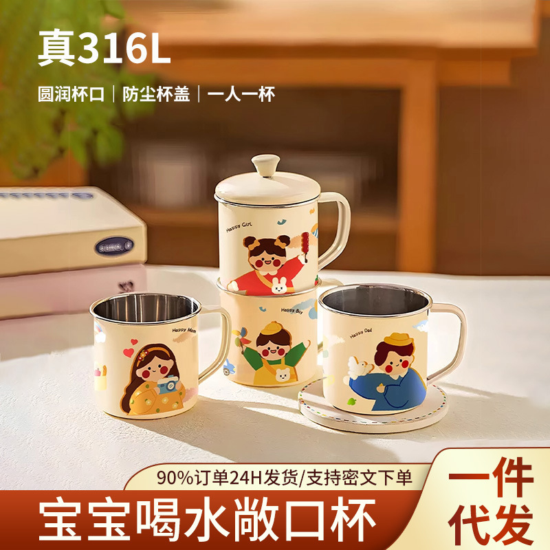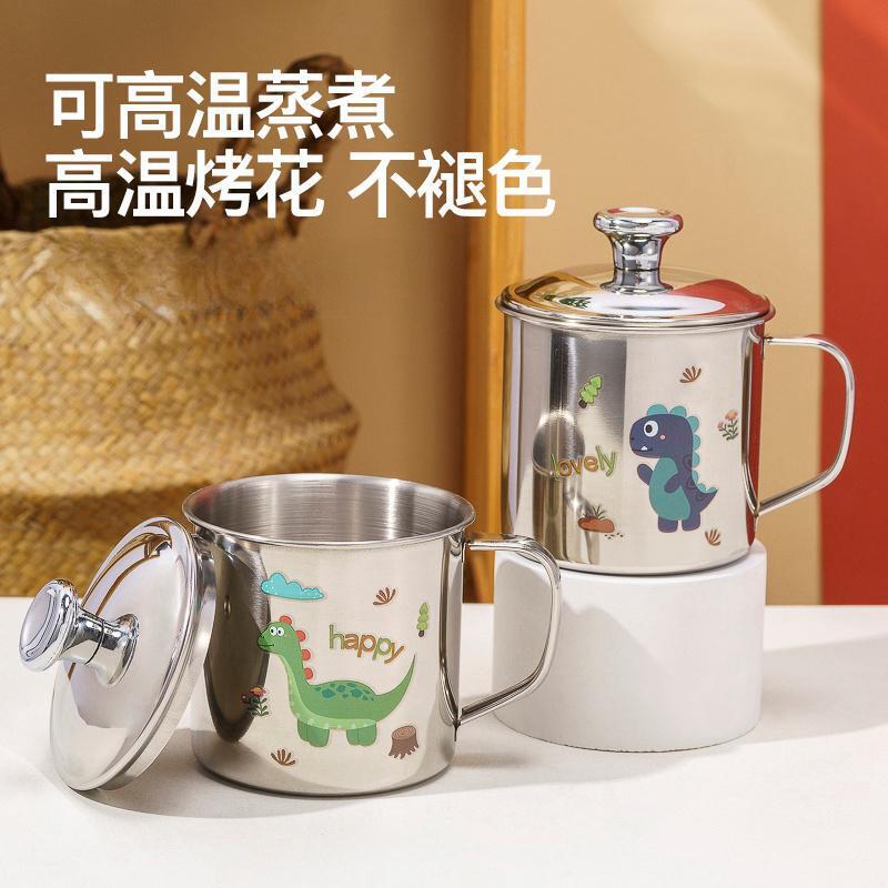 食品级316L不锈钢儿童水杯家用幼儿园宝宝敞口学饮杯卡通可爱杯子