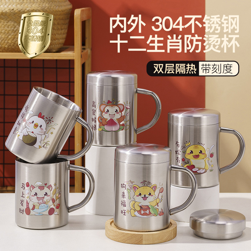 生肖防湯カップ幼稚園家庭用ステンレス子供漫画水カップ304ステンレス食品級