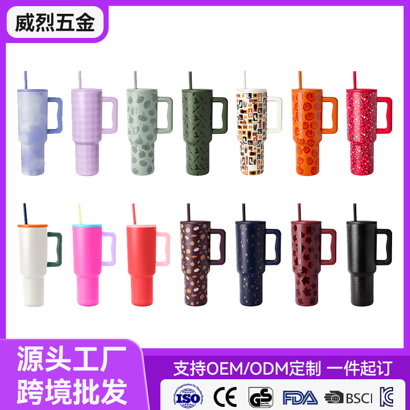 亚马逊304不锈钢保温杯40oz大容量手柄汽车杯户外便携吸管冰霸杯