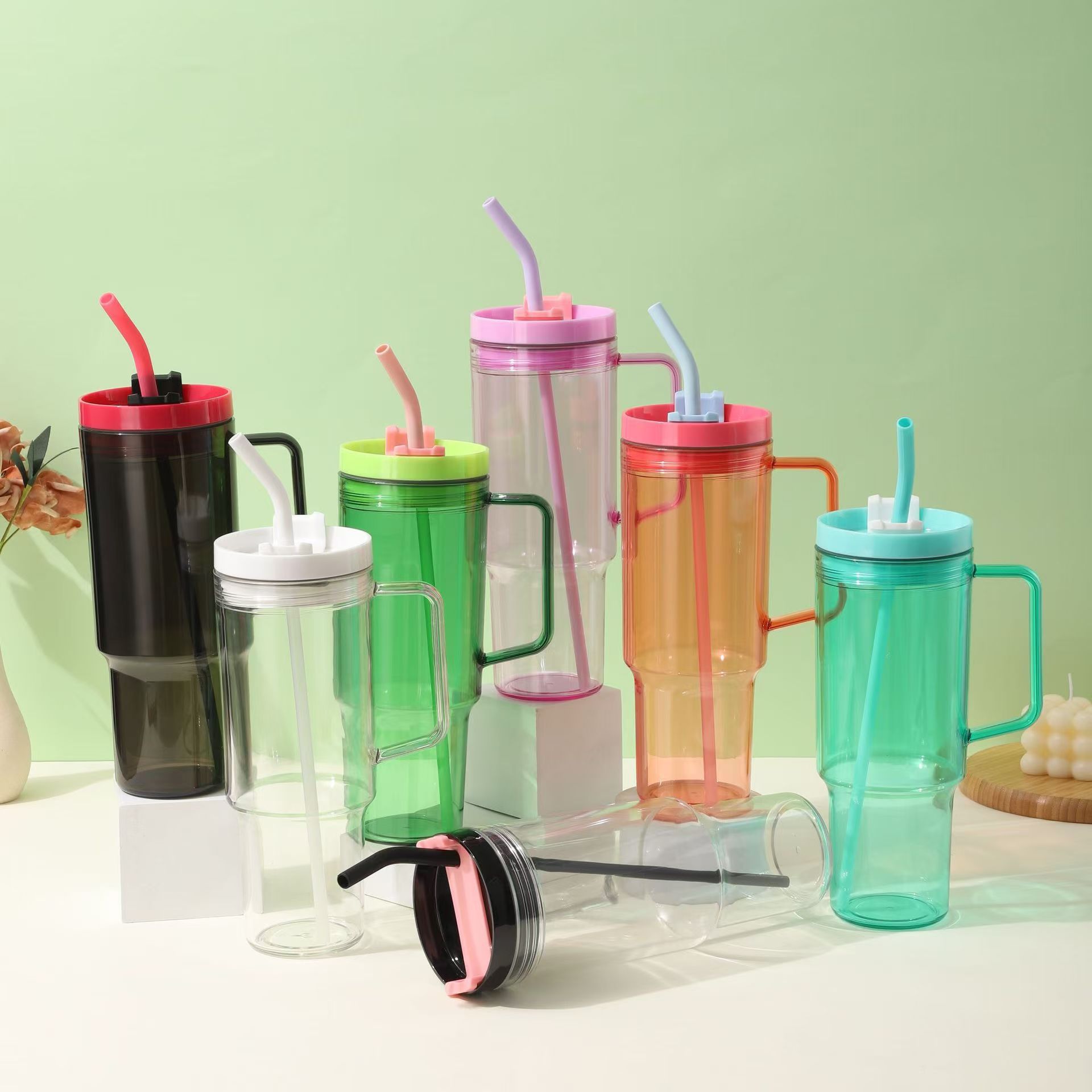 メーカー卸売り新型現代シンプル携帯型プラスチックストローカップ大容量ハンドル付きコッププラスチックカップ