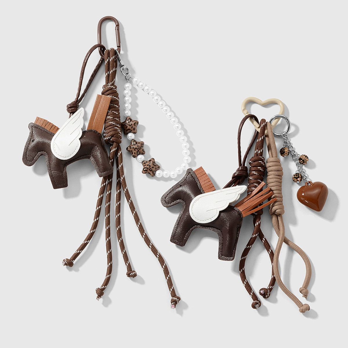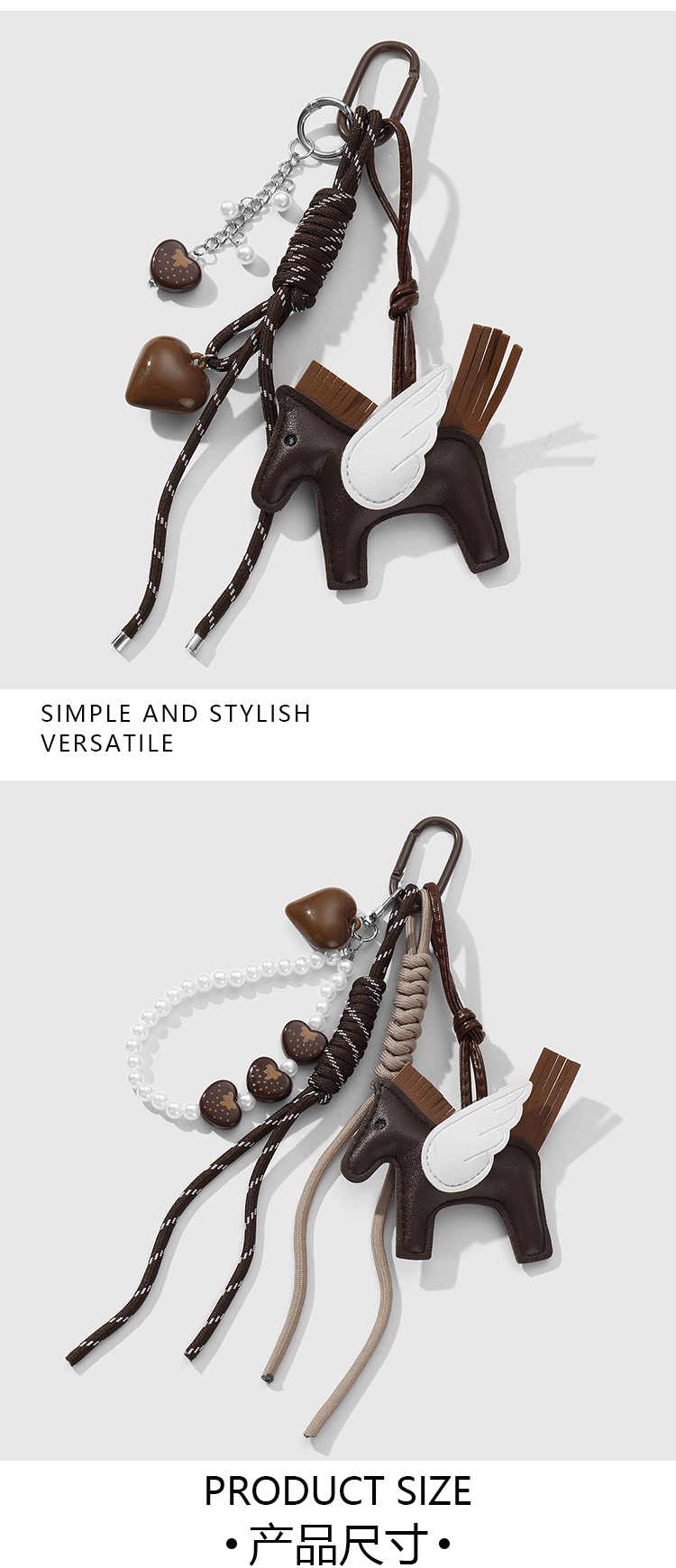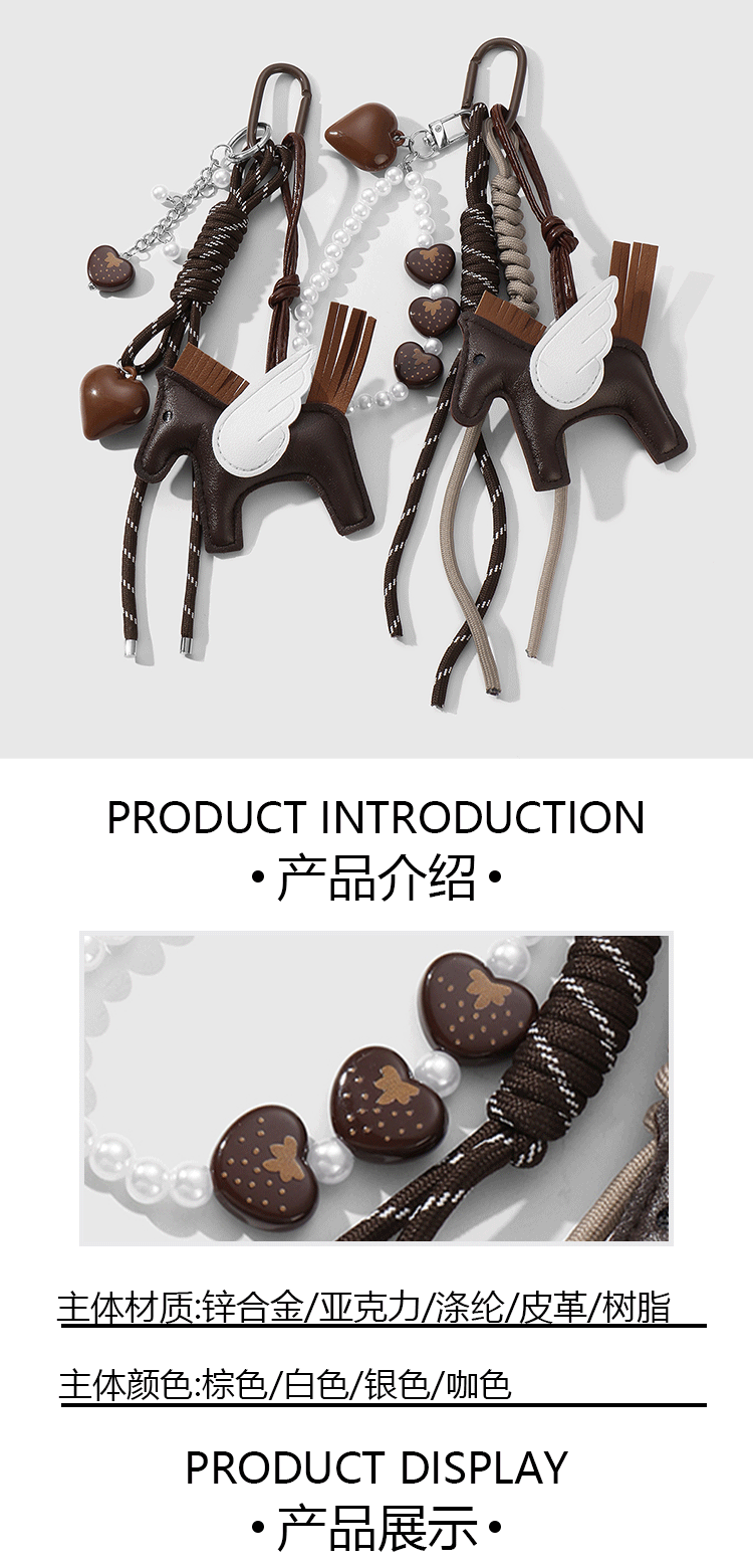 颜色 深棕色小马串珠钥匙扣1个,深棕色小马爱心钥匙扣1个