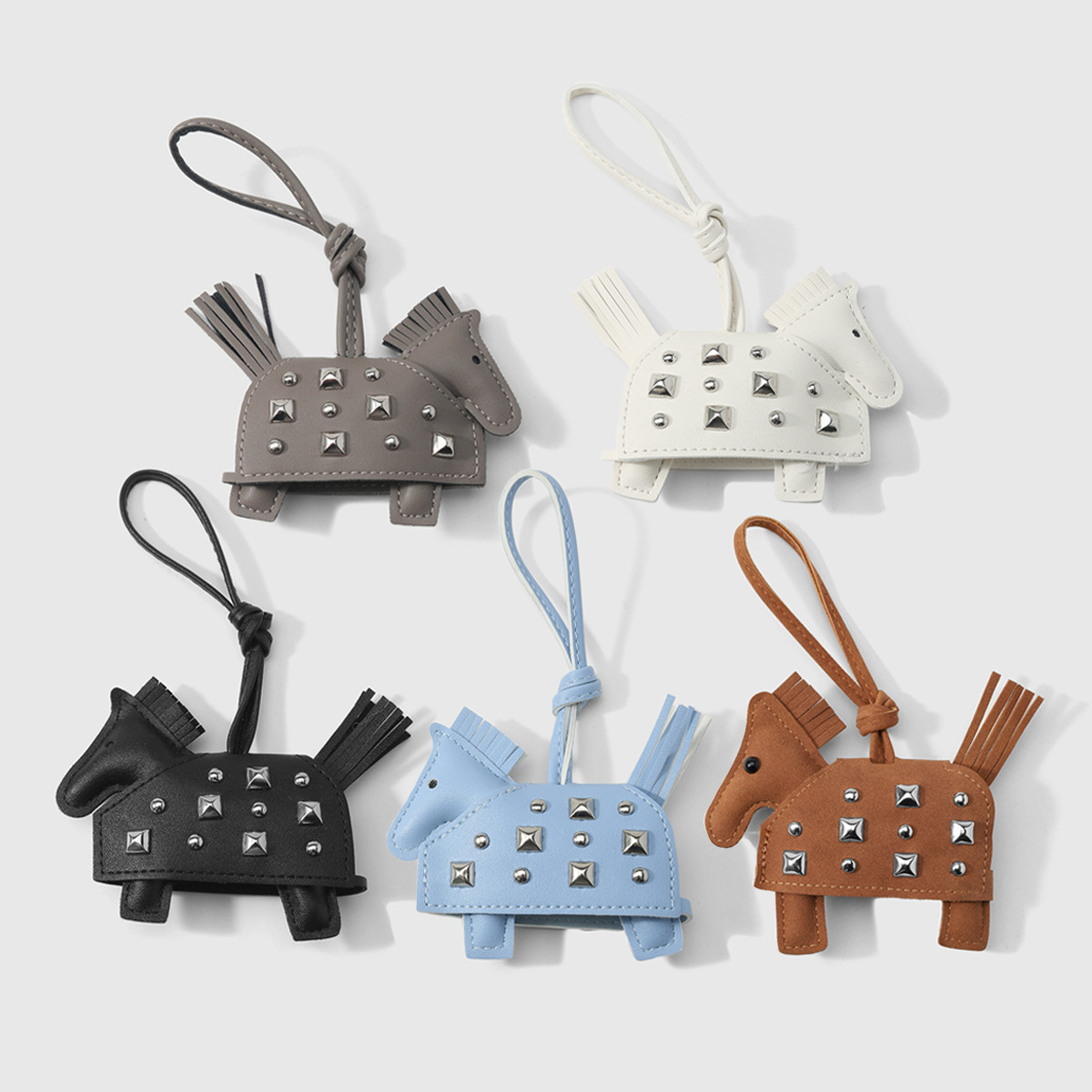 y2k时尚个性朋克高级感多色皮革手工铆钉小马战马DIY钥匙扣包挂件