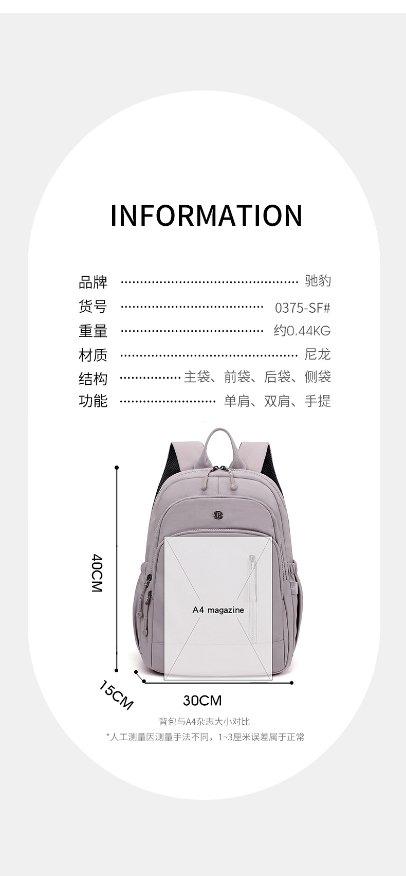 驰豹新品热卖双肩包休闲旅行大容 量女包学生书包一件代发0375-SF