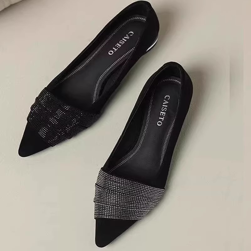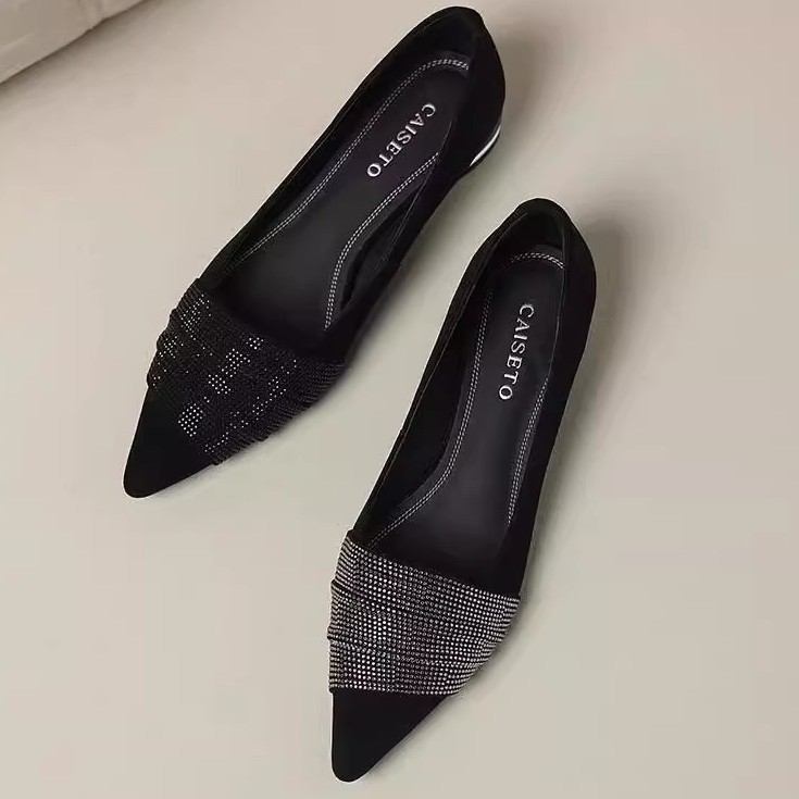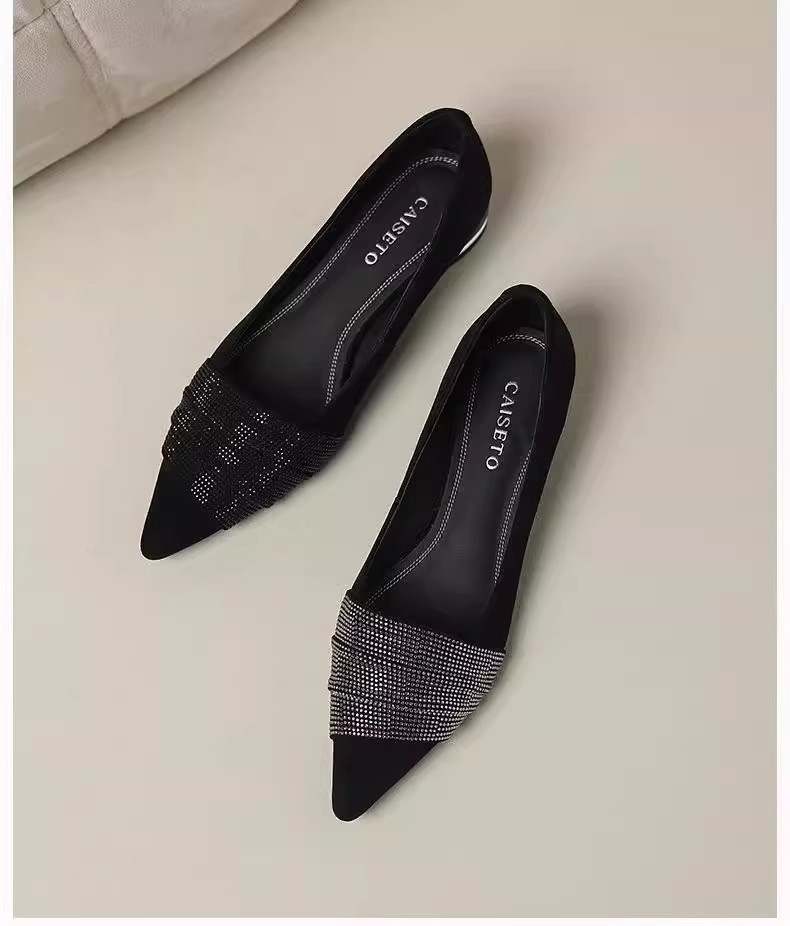 法式水钻气质尖头低跟单鞋女2025年秋季新款百搭轻奢鞋子软底女鞋