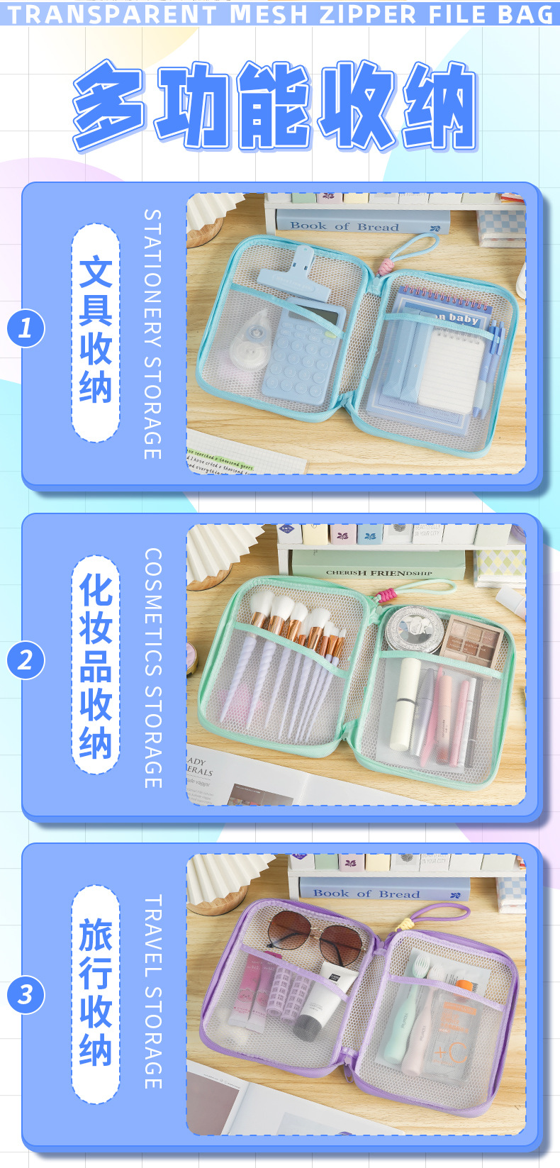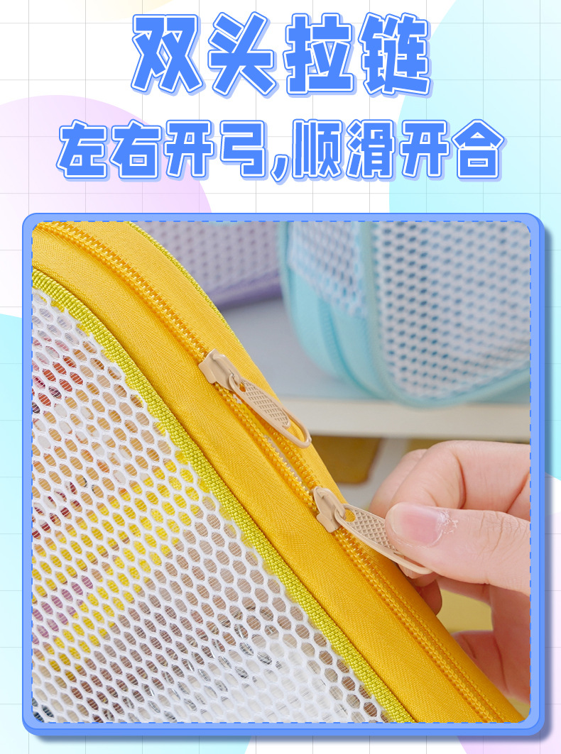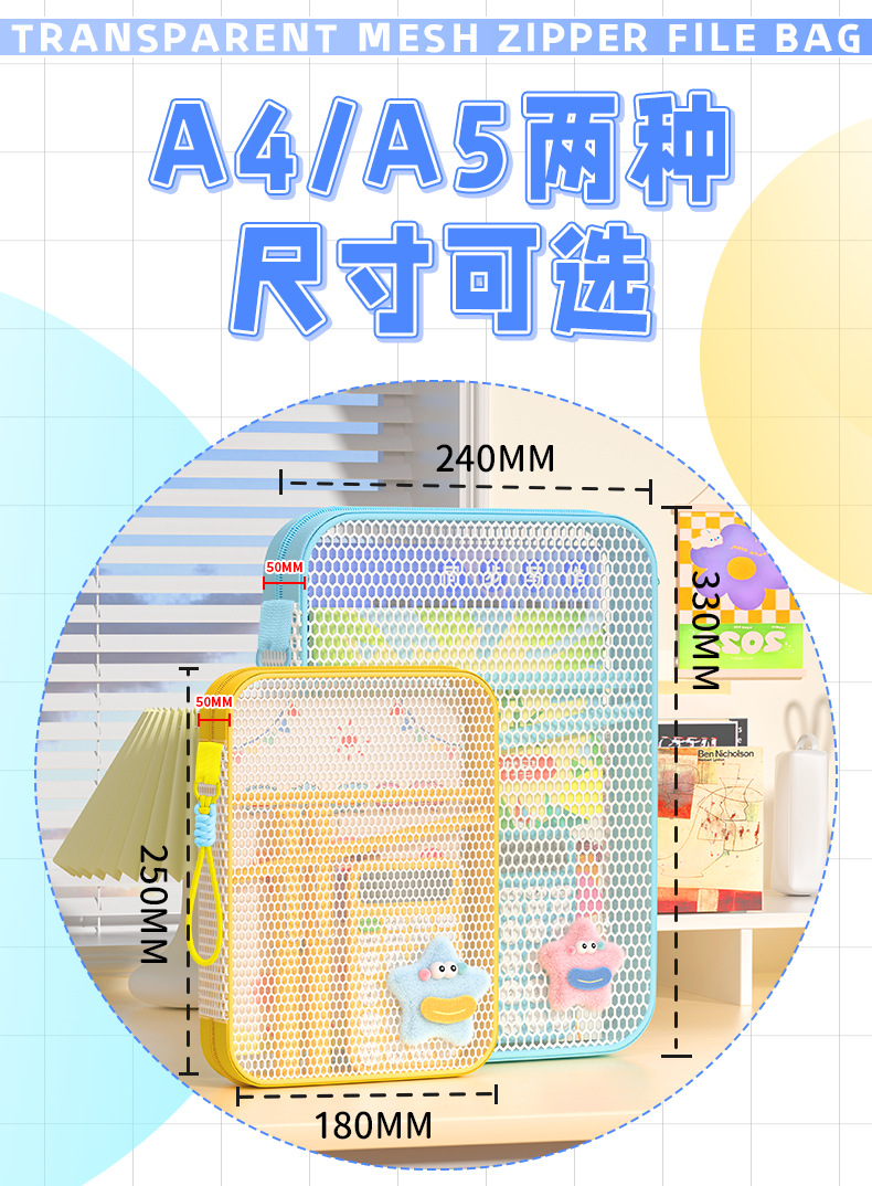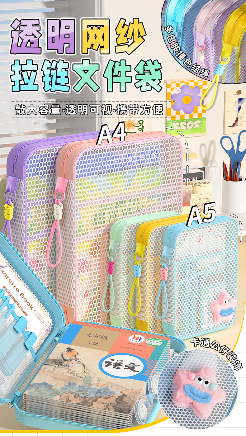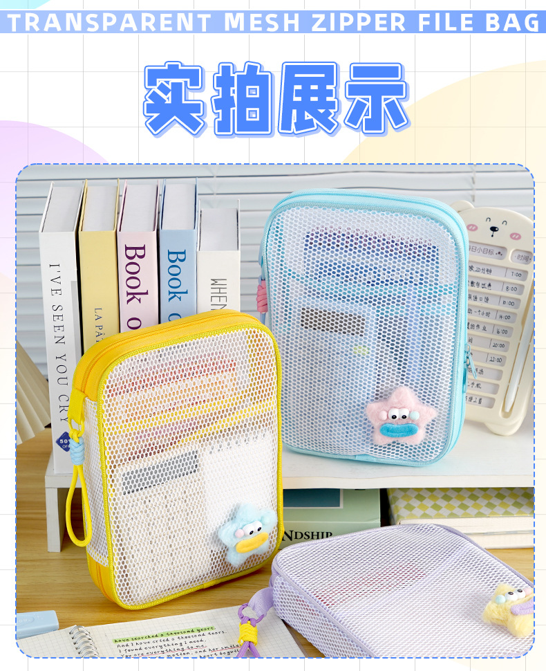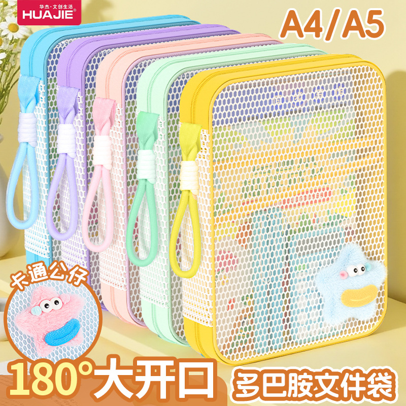 新品多巴胺网眼太空网文件袋高颜值多色学生试卷收纳大容量手提袋
