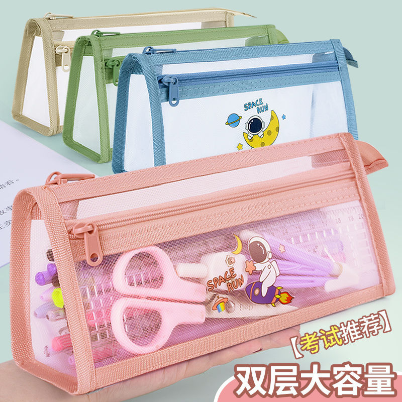 網紗透明筆袋学生中学生試験文房具袋2025新型女子大容量シンプル鉛筆袋