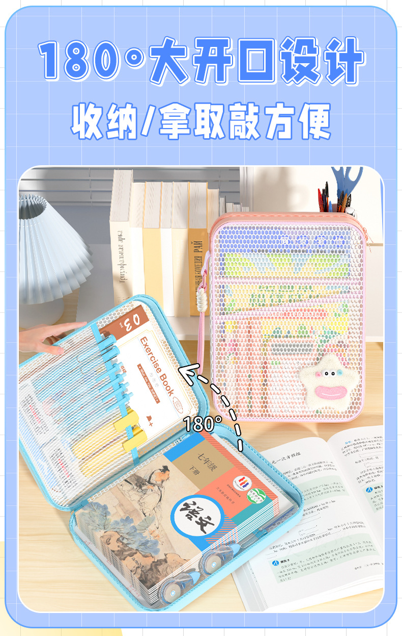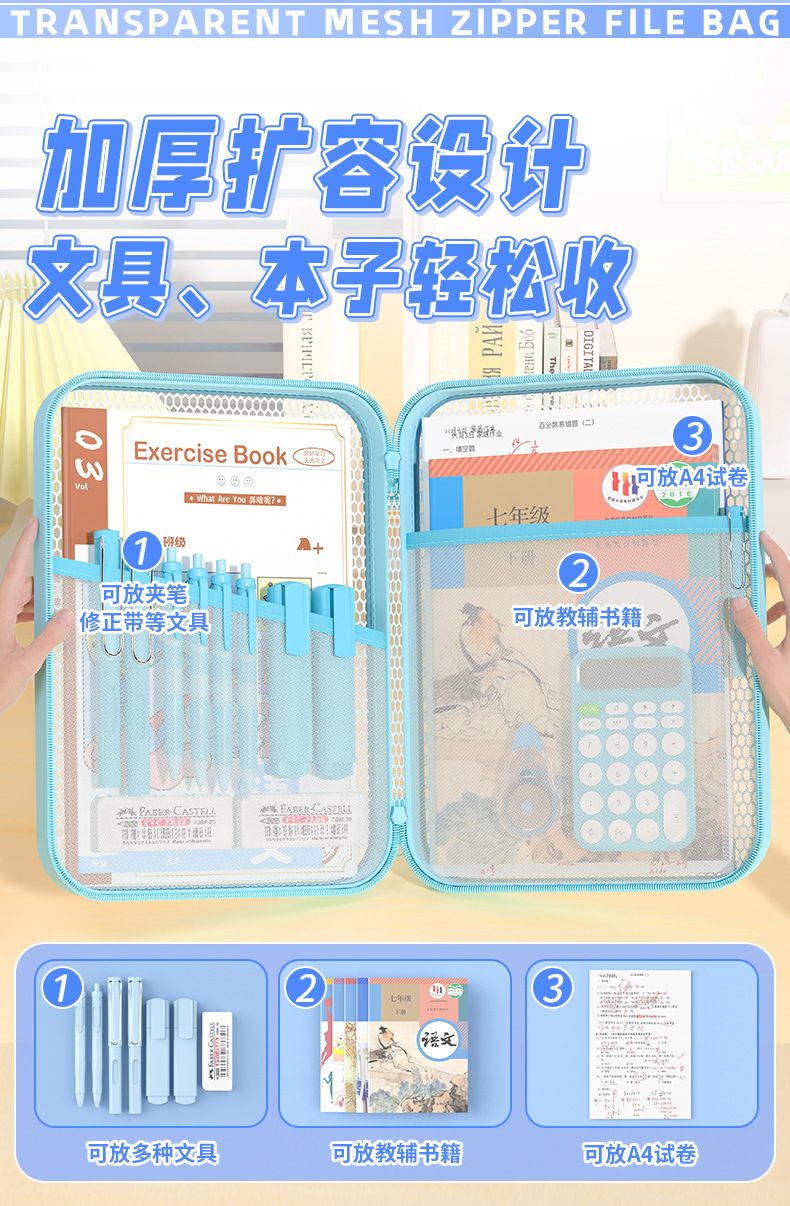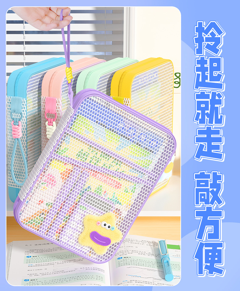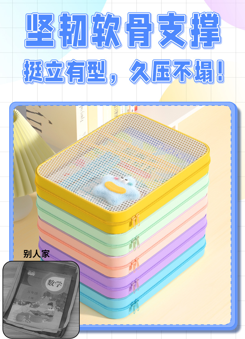 唐芊亿L型大开口四层科目分类袋手提加厚网纱袋学生补习科目考试