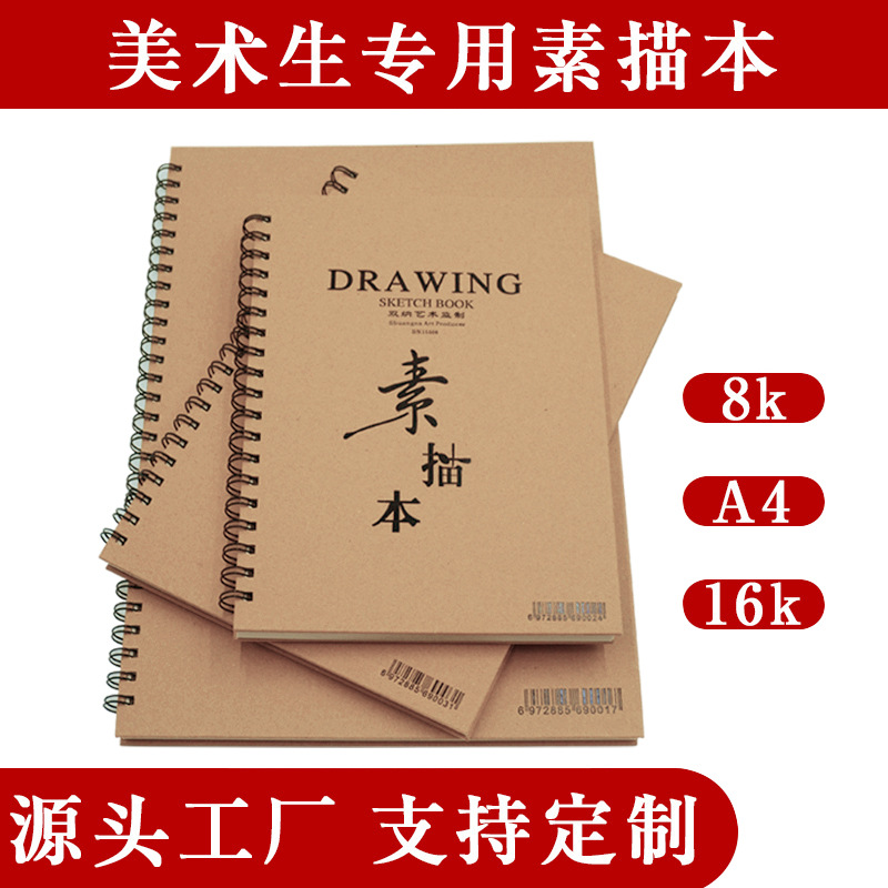专业素描本A4 8k 16k学生素描专用美术图画线圈本便携绘画速写本