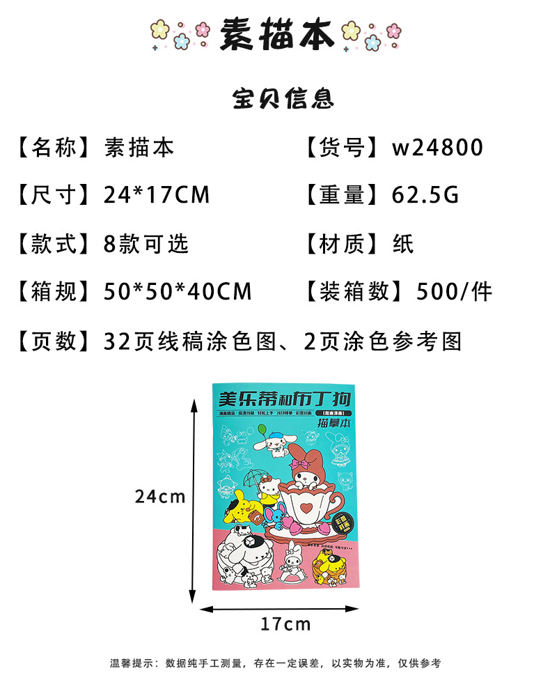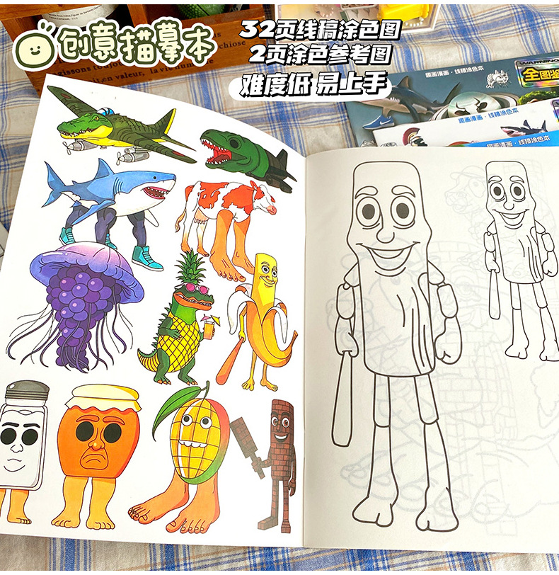 新款可爱创意卡通画画本儿童描摹涂色临摹本小学生卡通动漫线稿