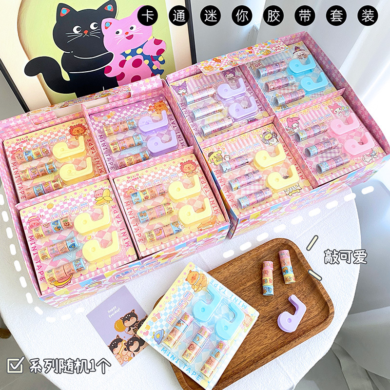 跨境新款彩色卡通迷你胶带座学生创意 diy胶带胶纸座套装批发