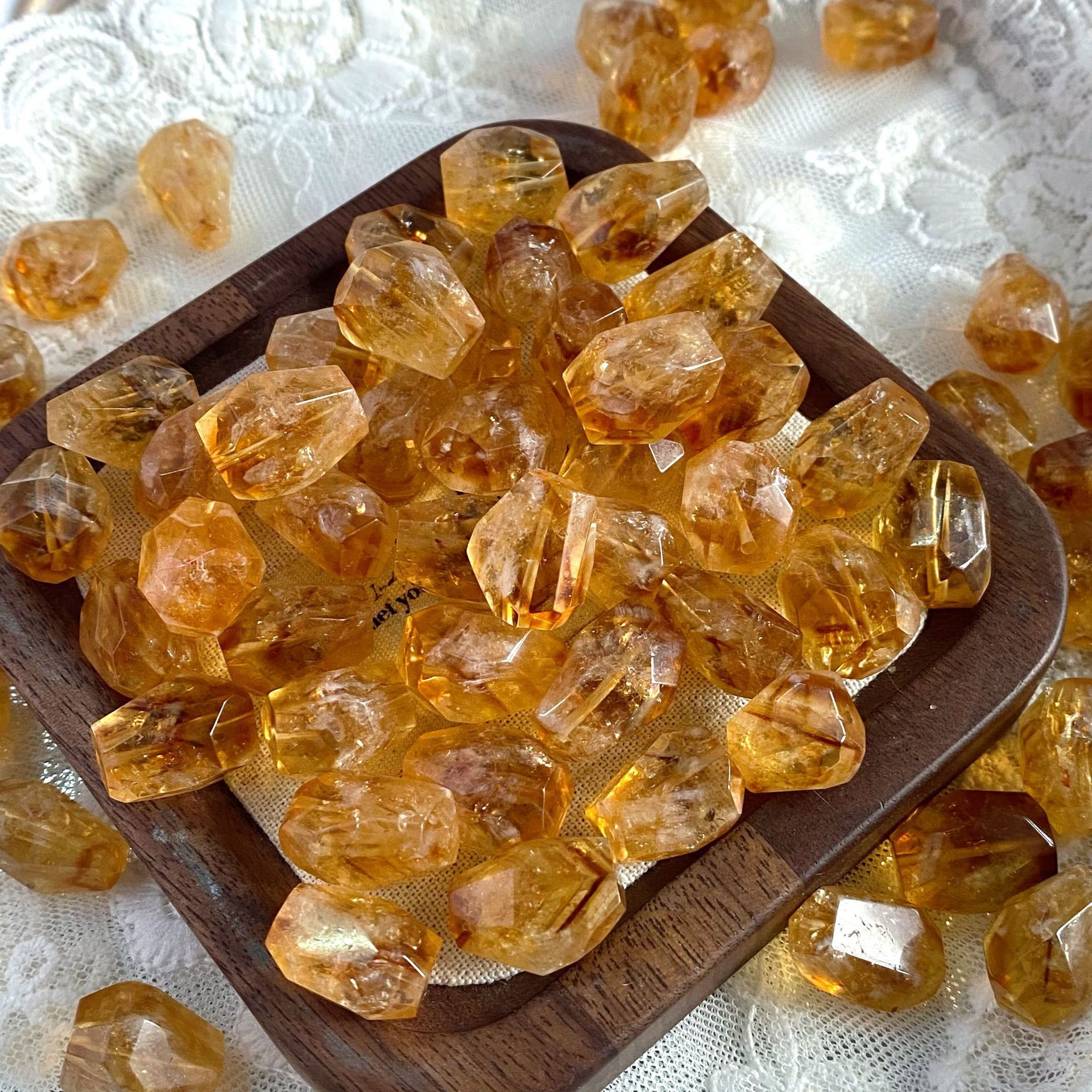 天然黄水晶随形切面散珠几何裸石编织吊坠手链项链款黄水晶半成品