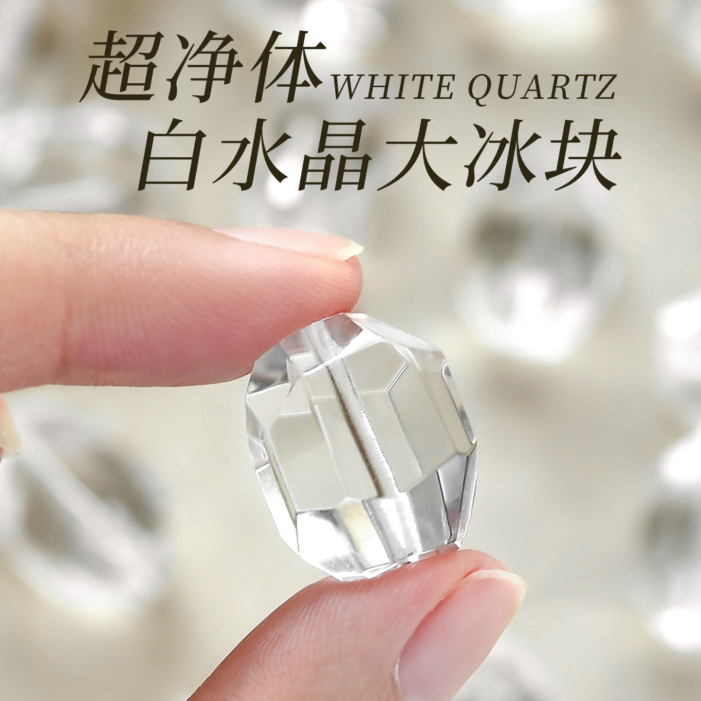 天然白水晶diy饰品配件大冰块切面随形散珠子白色异形不规则配件