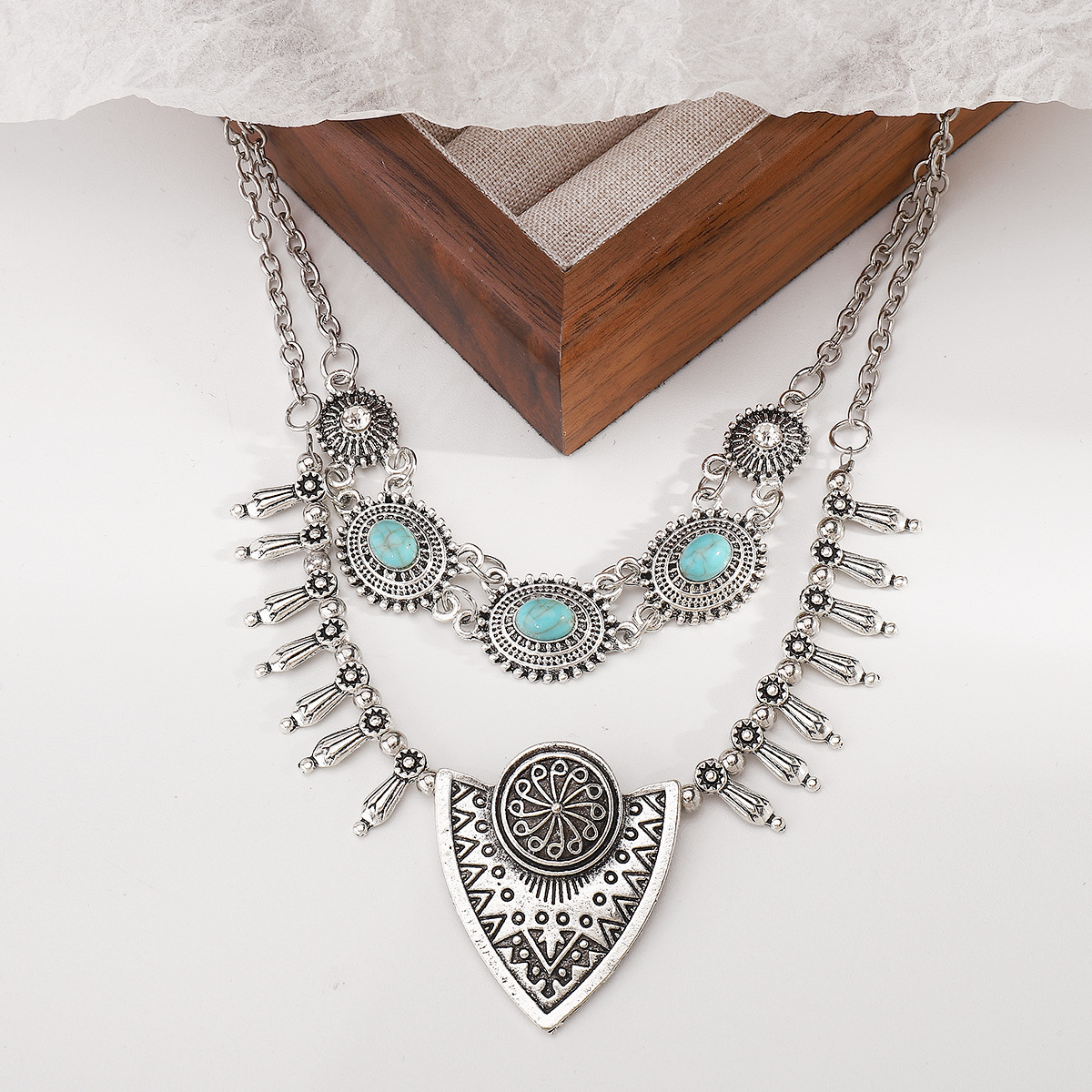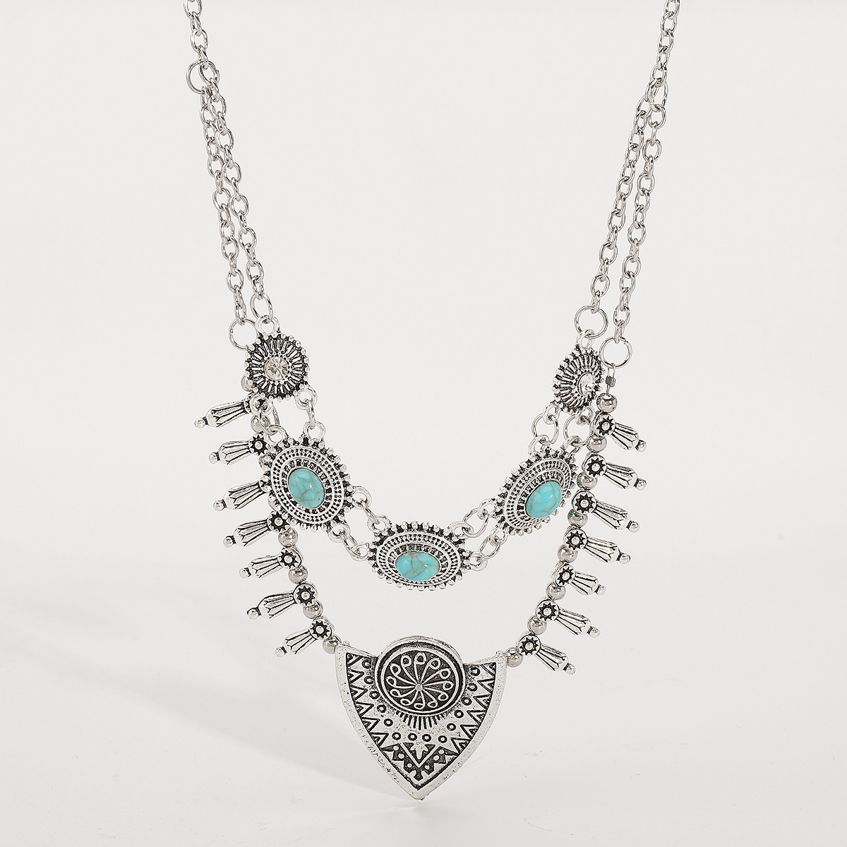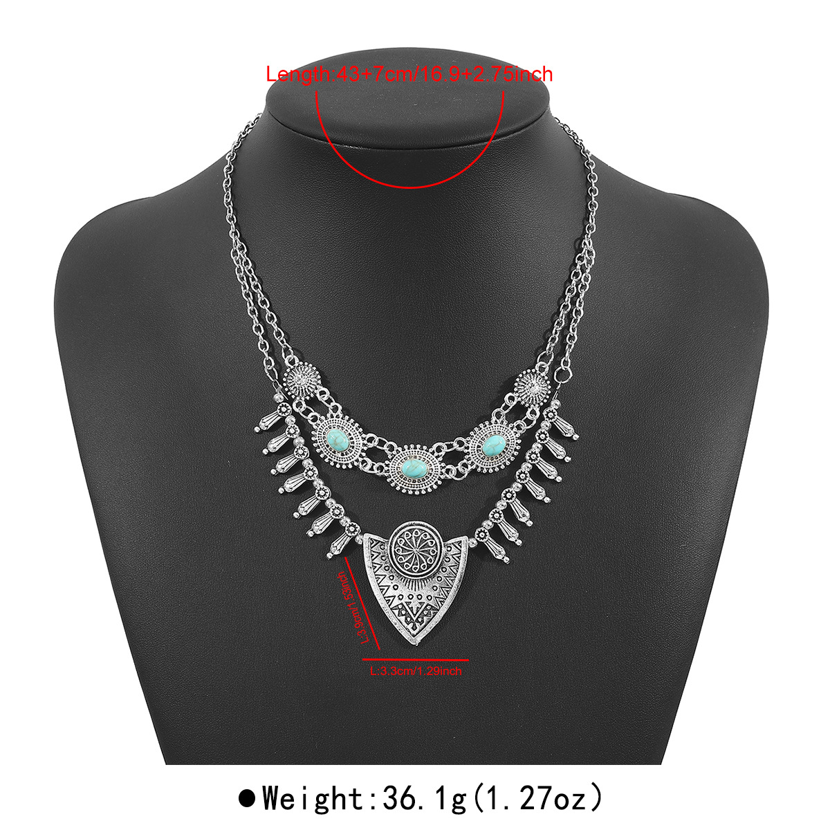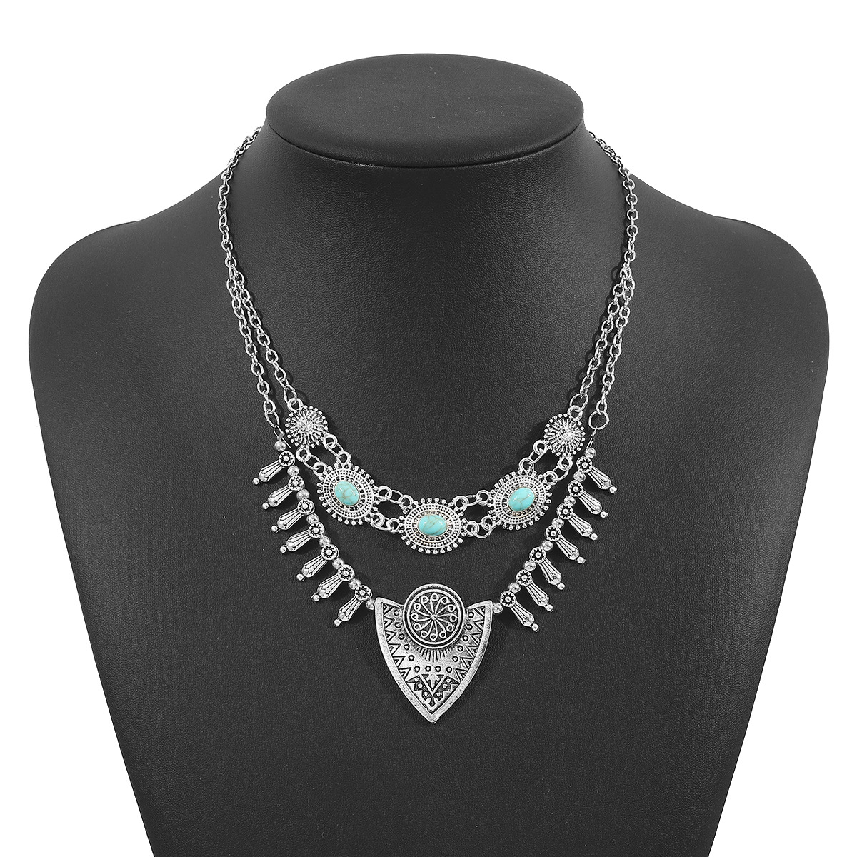 N12842跨境新款波西米亚民族复古绿松石项链 个性ins冷淡风锁骨链